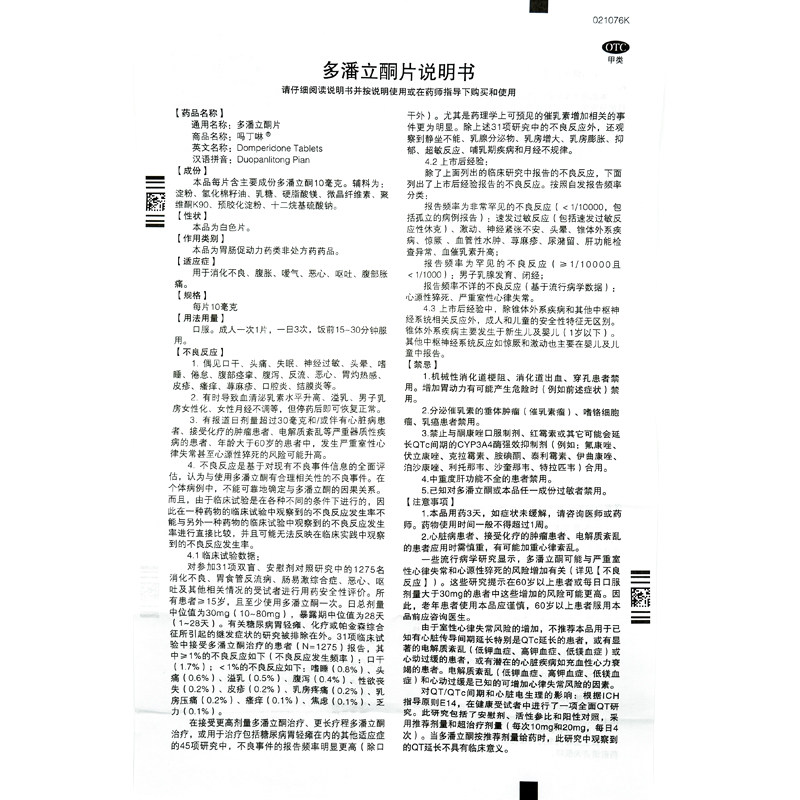 📚 吗丁啉 多潘立酮片 10mg*30片/盒