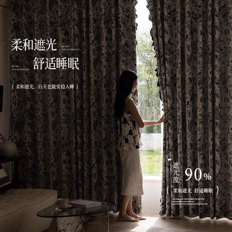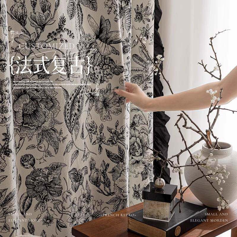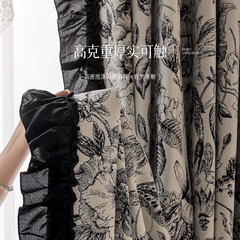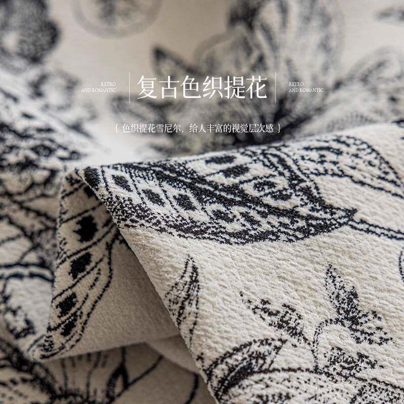 📚 绮梦花园法式复古黑白雪尼尔提花窗帘许村花布高品质布料厂家