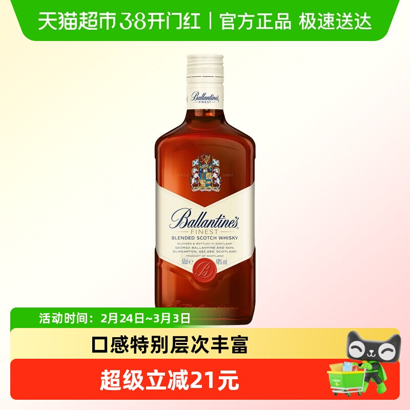 68¥ HU006 RBatUKQ7ere¥ https://m.tb.cn/h.7ADLQzt 【进口】Ballantine's百龄坛特醇威士忌500ml×1瓶原装洋酒特调 --------------------- 【原售价】112元 【现售价】83元。