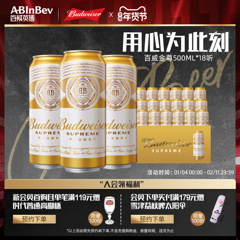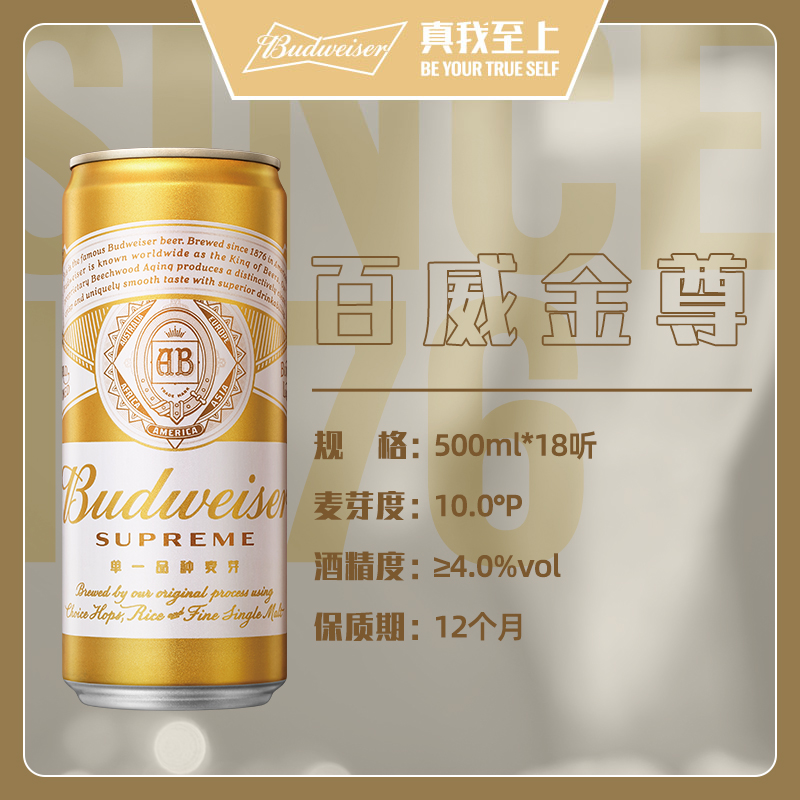 📚 百威金尊啤酒500ml*18听高端拉格9.5°P罐装整箱官方旗舰店英博