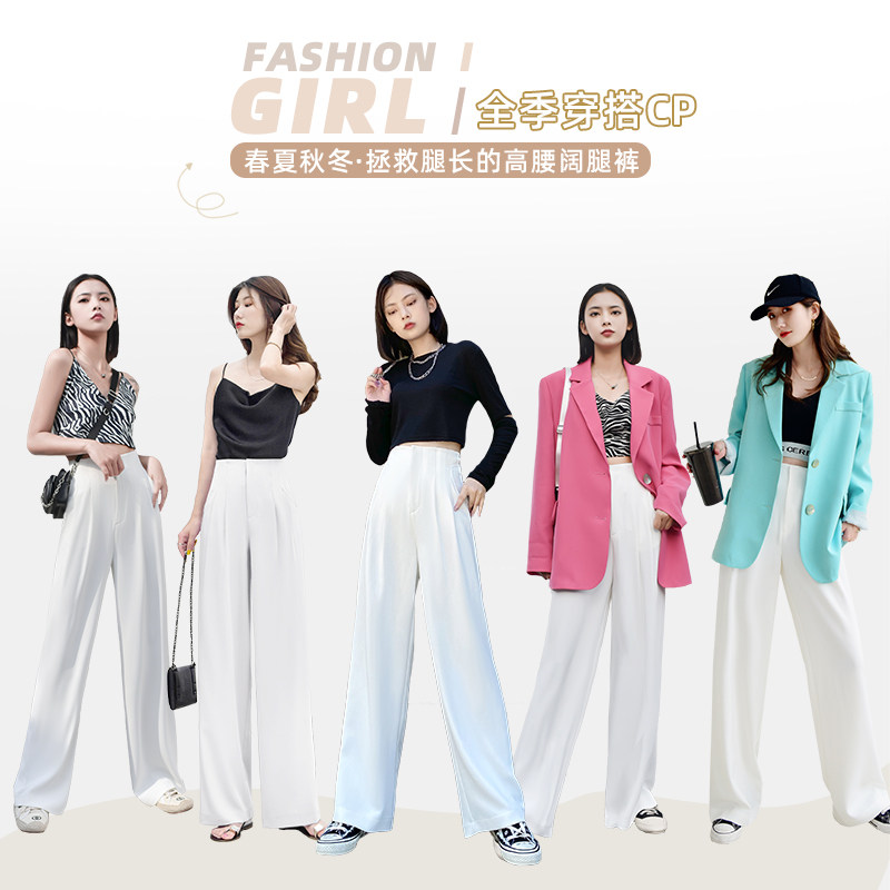 📚 白色高腰阔腿裤女春夏百搭时尚宽松雪纺裤甩裤拖地休闲净版西装裤