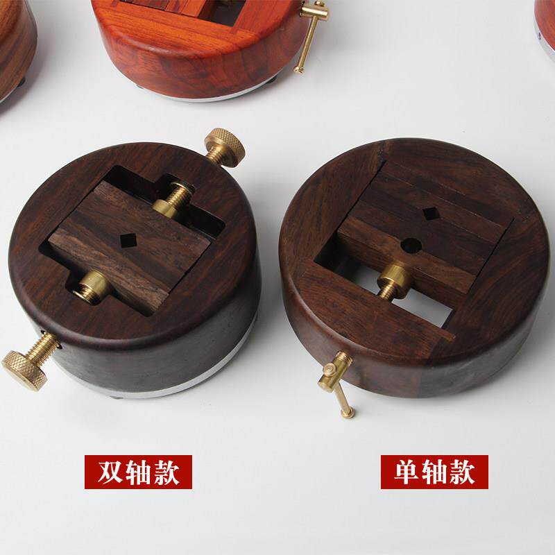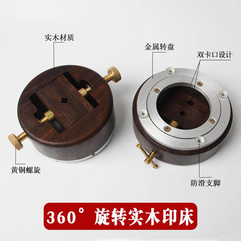 📚 花梨木印床圆形360度旋转底座黑檀木夹具印章雕刻石料工具铜印床