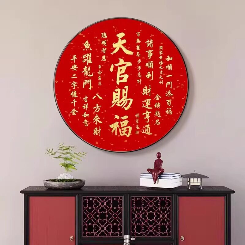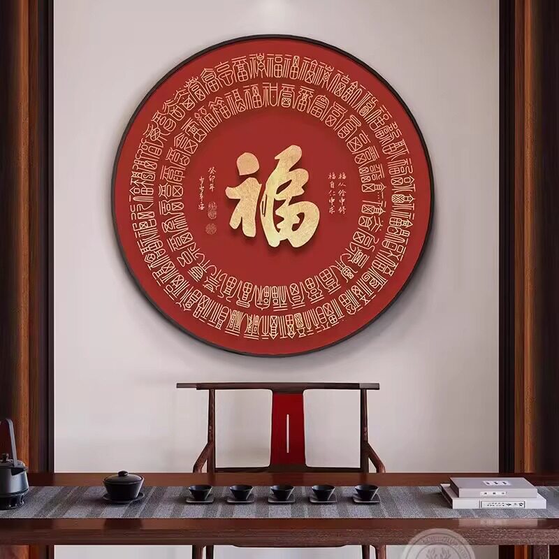 📚 新中式福字玄关装饰画客厅玄关中国风圆形挂画入户正对门高端壁画