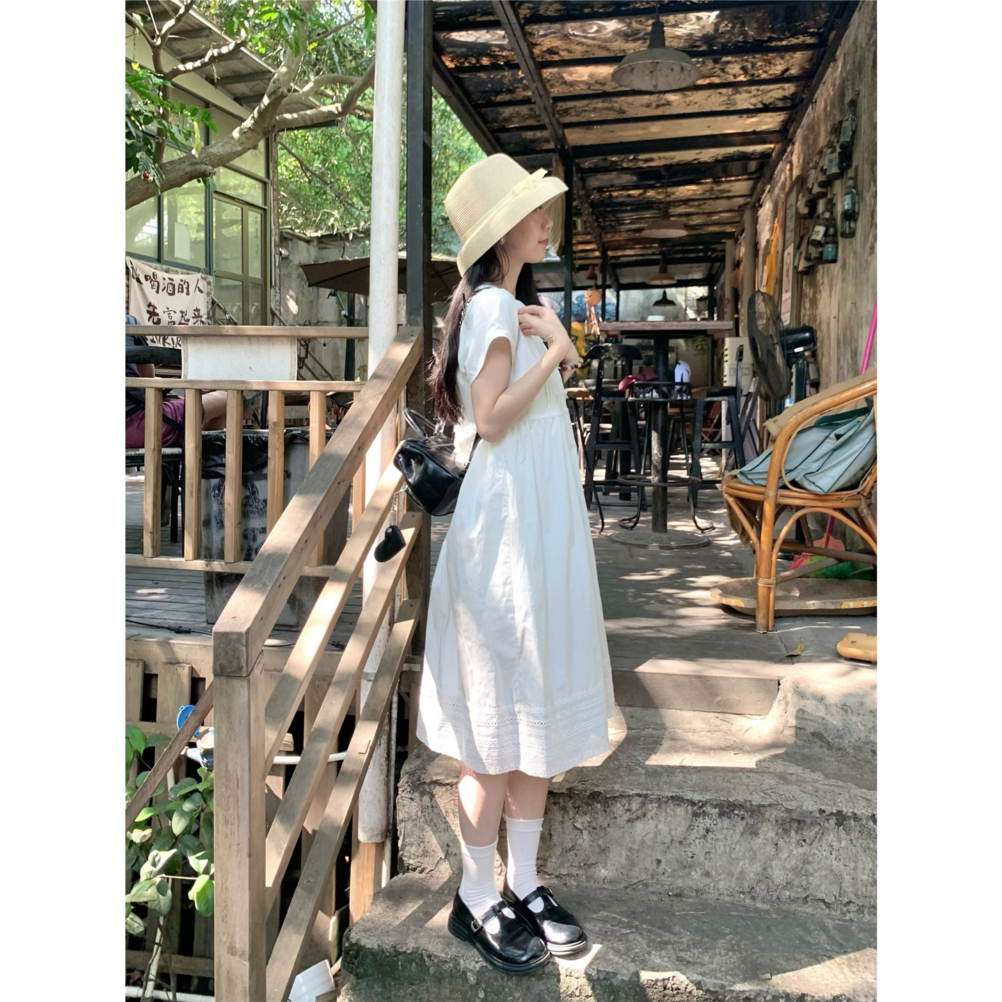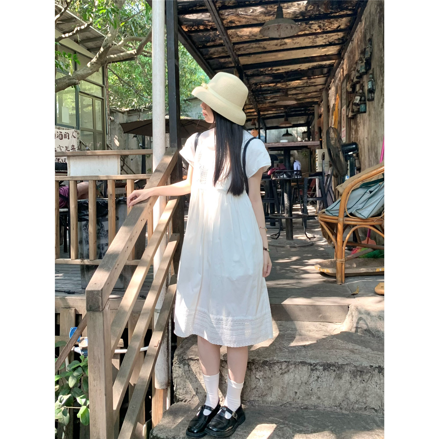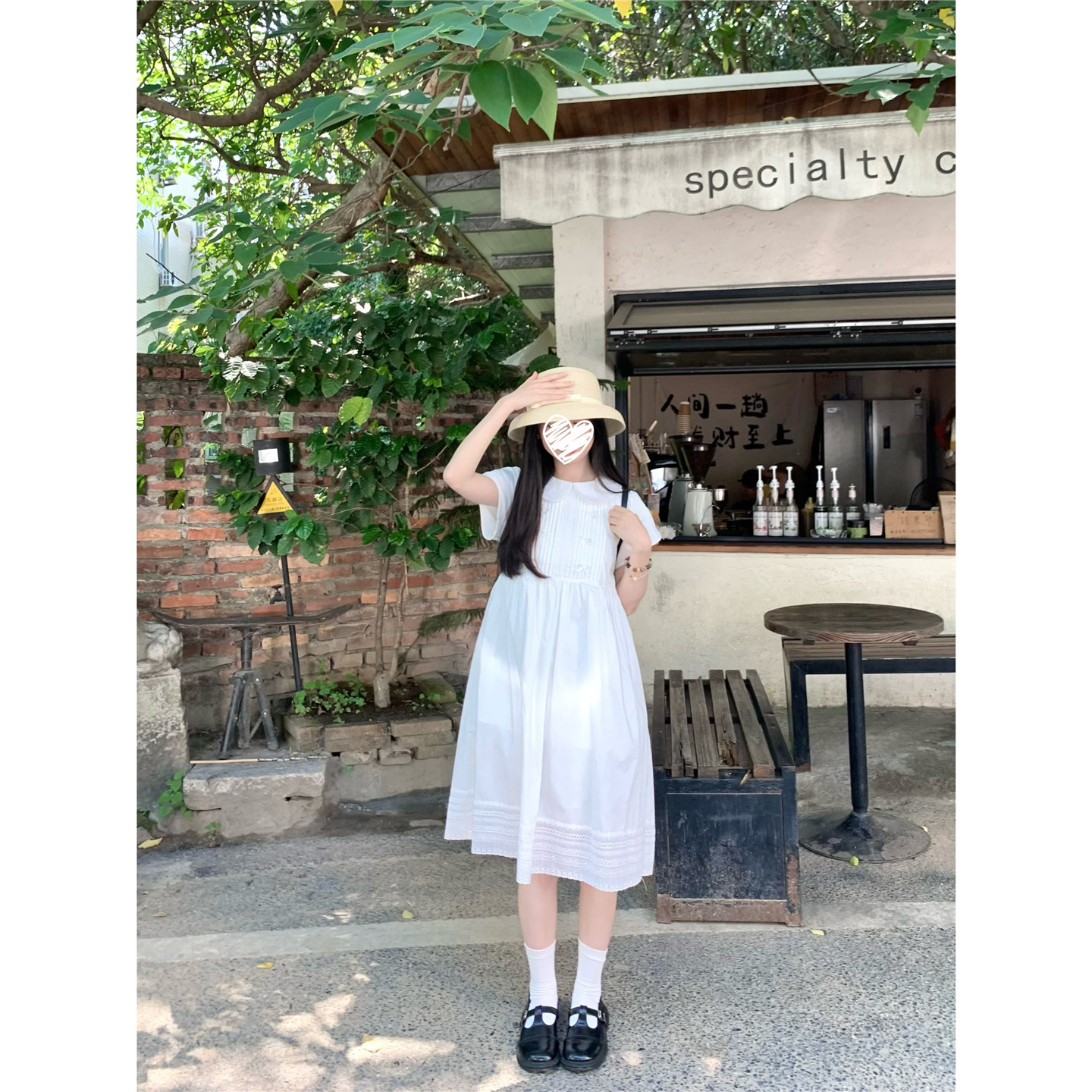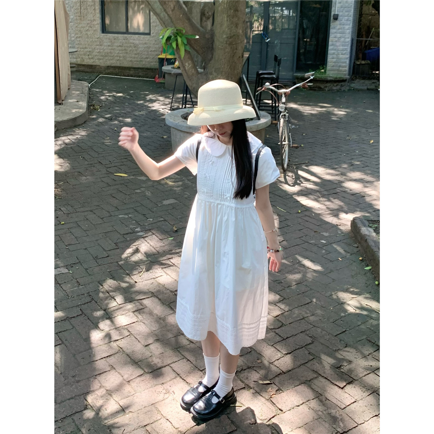 📚 踏进银河 稚气学妹 夏日学院风白色娃娃领连衣裙显瘦收腰小裙子