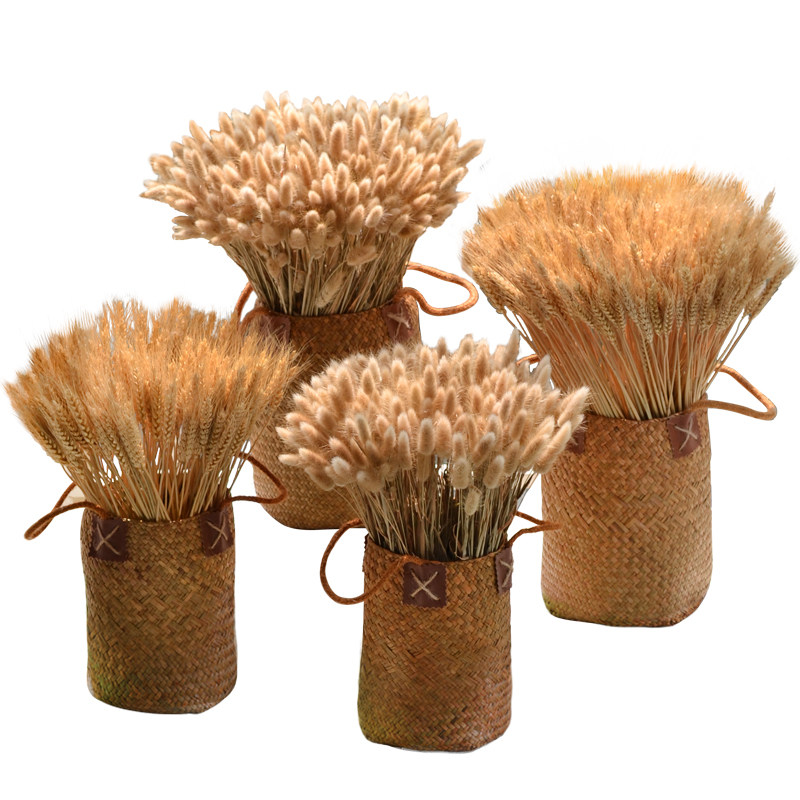 📚 天然草编花篮海草编织筐篮子插花瓶花盆麦穗芦苇干花客厅装饰摆件