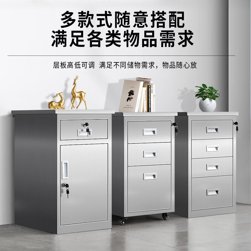 📚 304不锈钢矮柜文件柜床头柜医疗带锁储物柜工具柜桌下抽屉活动柜