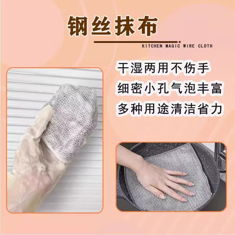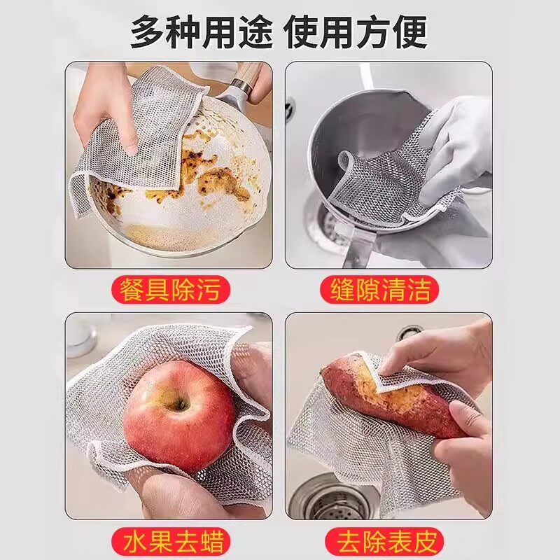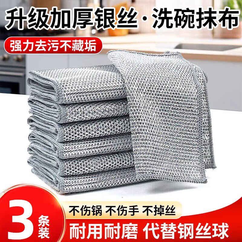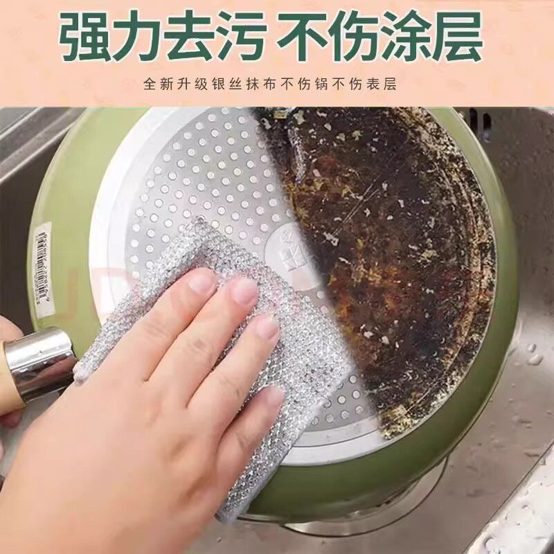 📚 钢丝洗碗布银丝抹布厨房专用双面网格不沾油易清洗不伤锅百洁布