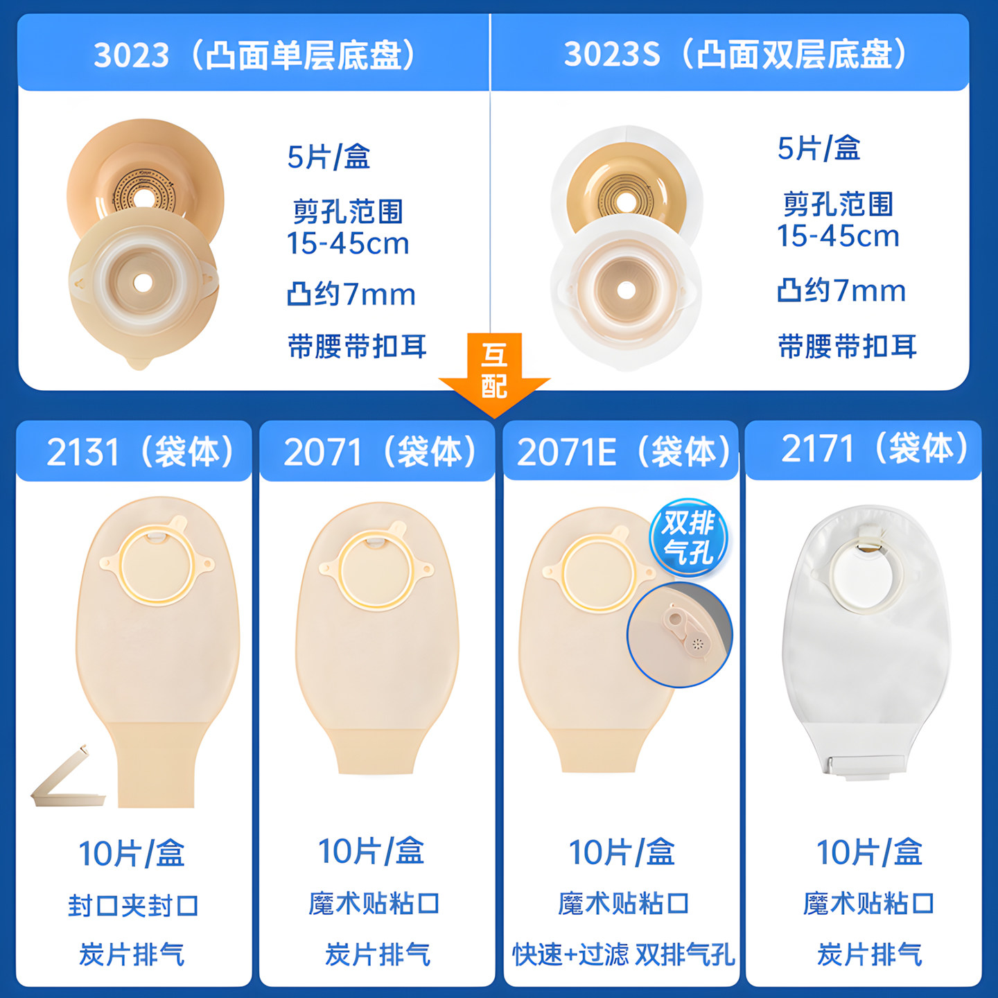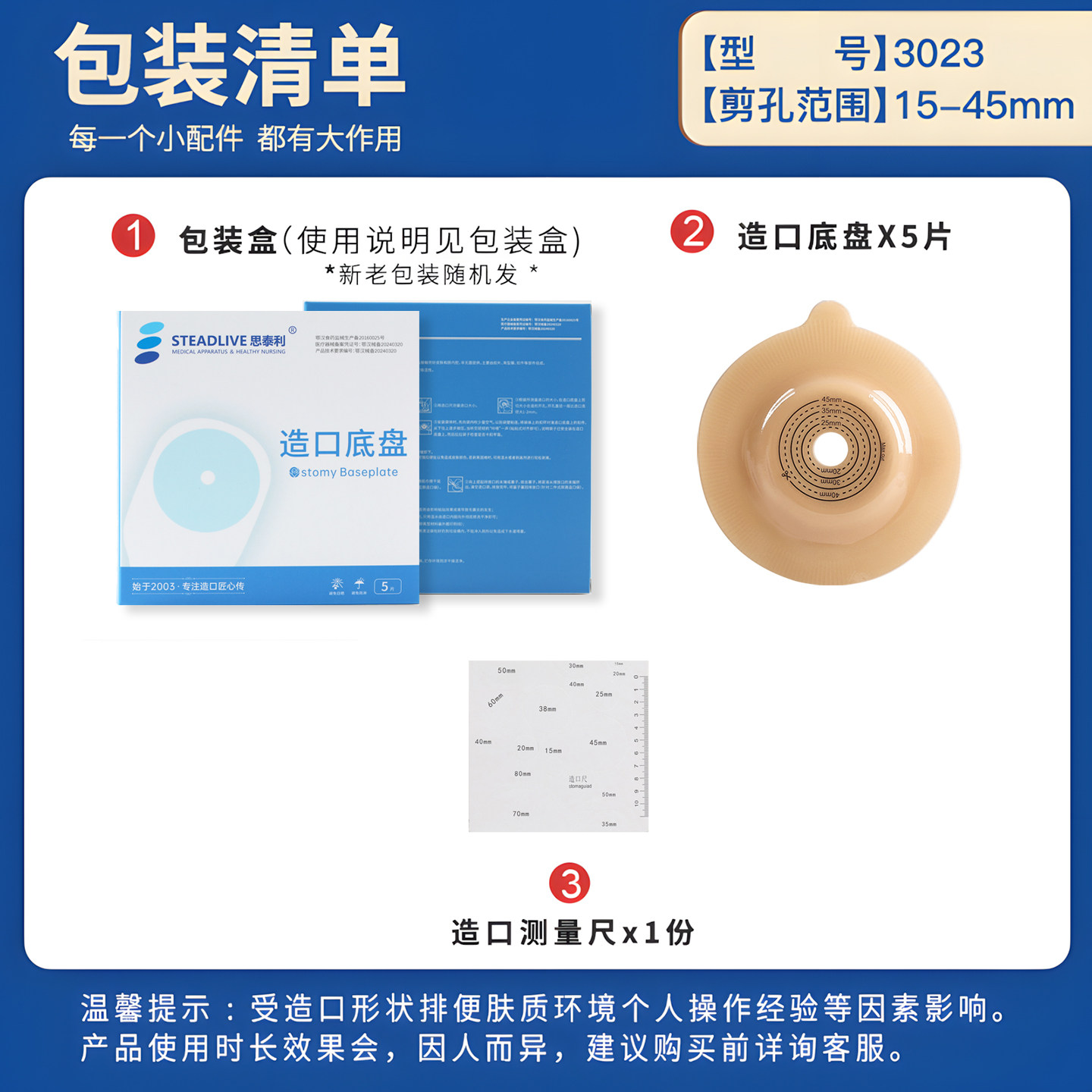 📚 思泰利二件式造口袋微凸底盘直肠癌造瘘袋两件式造口凸面底盘3023