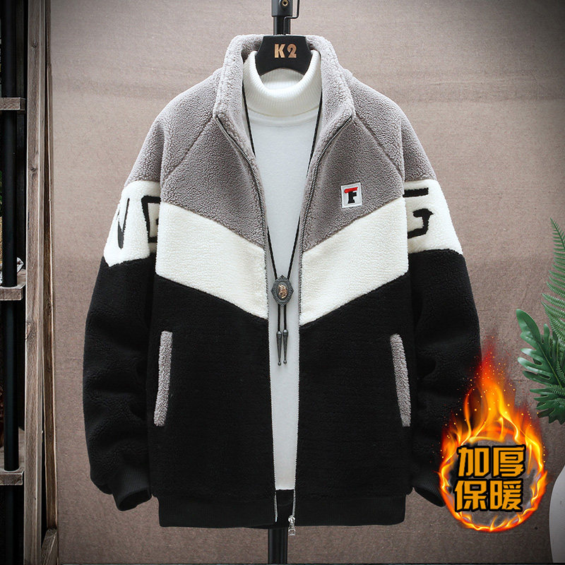 📚 2026休闲立领颗粒绒皮草男秋冬季青少年学生棉毛绒加绒加厚外套