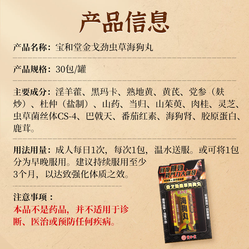 📚 【自营】港版宝和堂金戈劲虫草海狗丸2g*30包固精益气增强体力