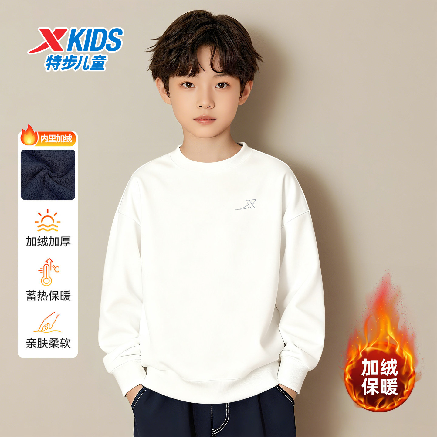 📚 特步童装加绒卫衣男童针织运动上衣2026秋冬季新款休闲保暖套头衫