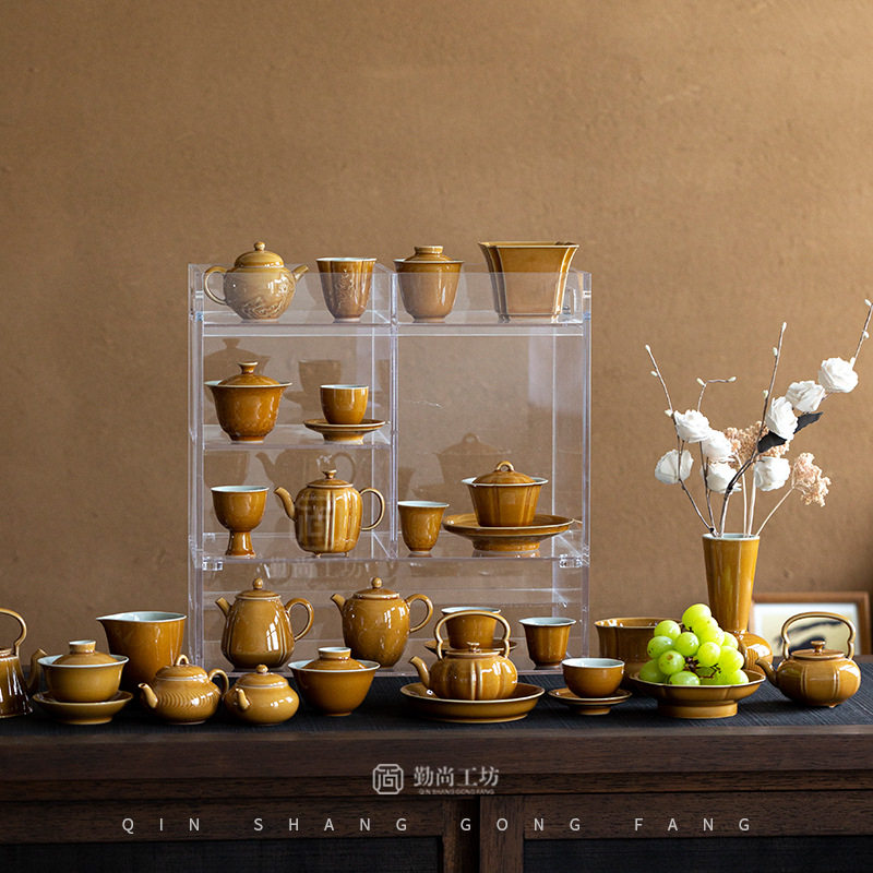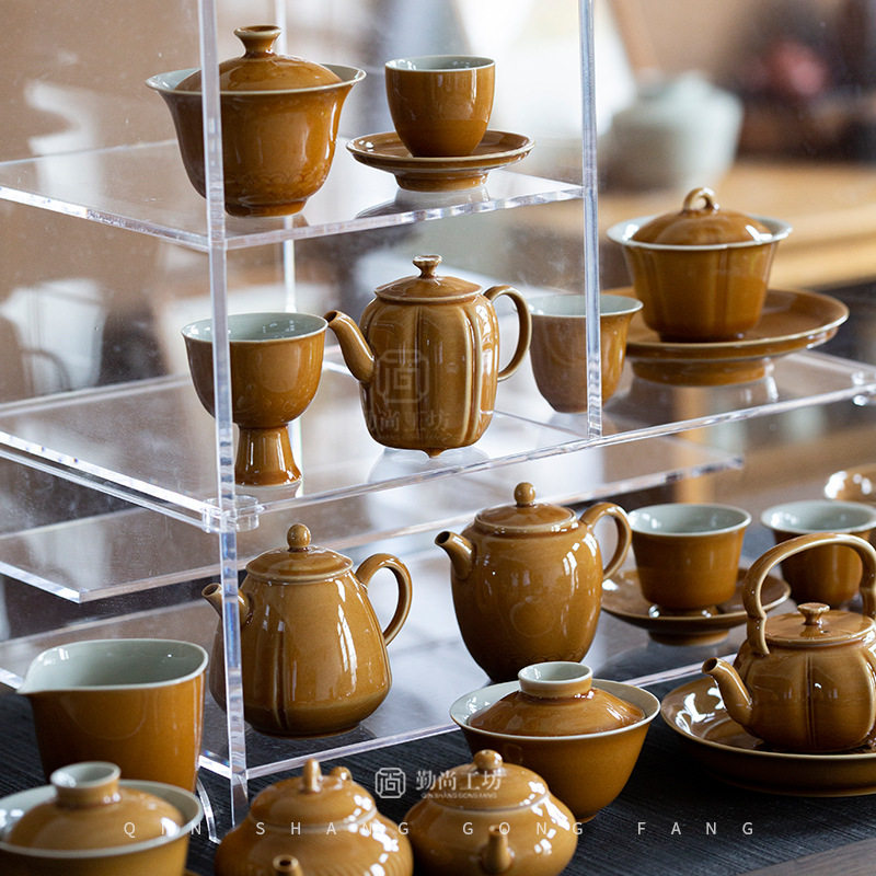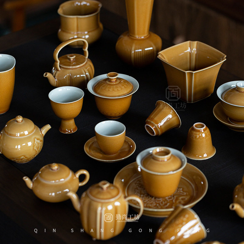 📚 北溪堂琥珀黄功夫茶具盖碗泡茶壶手工陶瓷公道杯建水品茗杯小