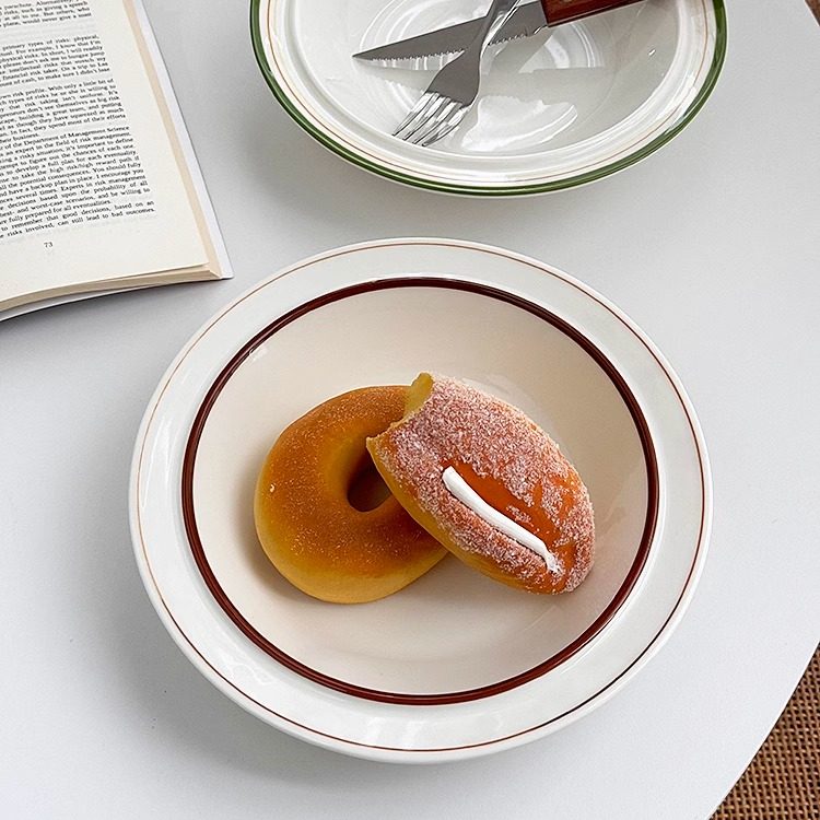 📚 安木良品 外贸原单 韩国ins复古条纹线条陶瓷一人食小汤盘饭碗