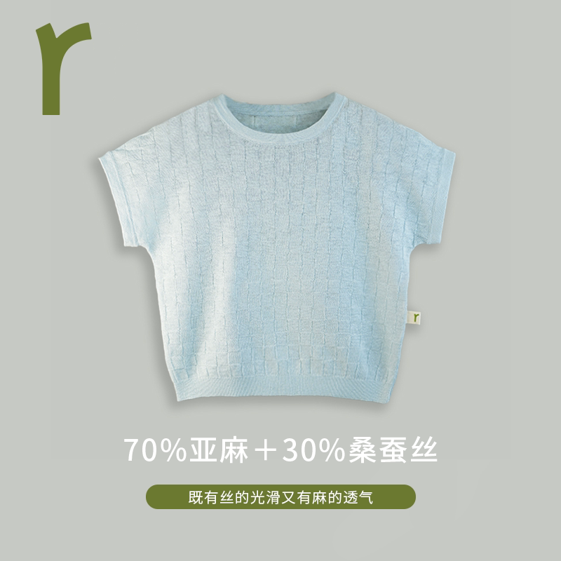 📚 ArborTree 70%亚麻+30%桑蚕丝 宝宝方糖纹夏季短袖T恤(亲子款)