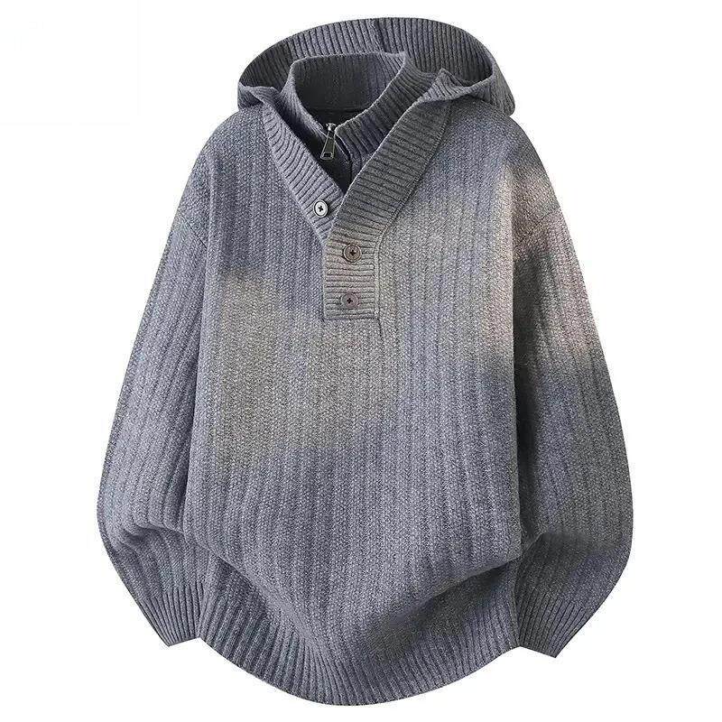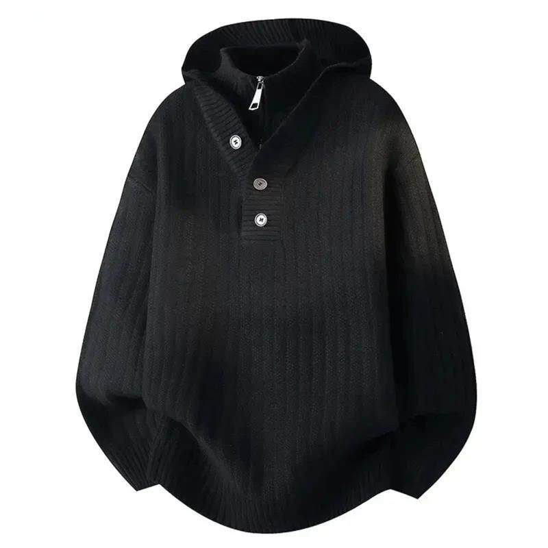 📚 塔弗森男装专营红色假两件连帽毛衣男冬季毛线衣本命年针织衫卫衣