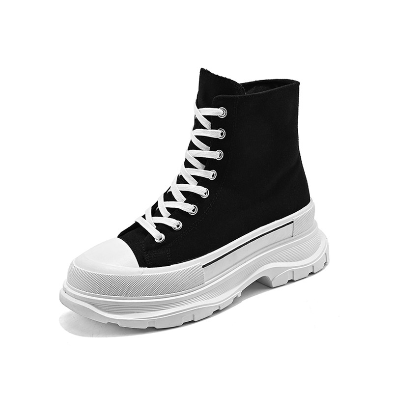 📚 帆布男鞋夏季款百搭休闲麦昆厚底高帮板鞋运动增高黑布鞋男款潮鞋
