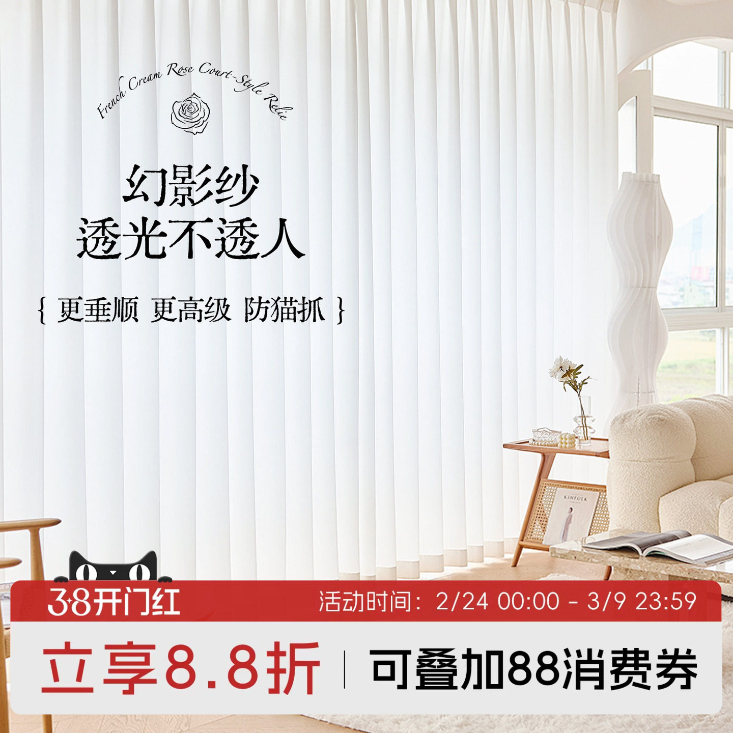 📚 高端窗纱纱帘透光不透人梦幻窗帘幻影纱白纱卧室客厅白色防晒阳台