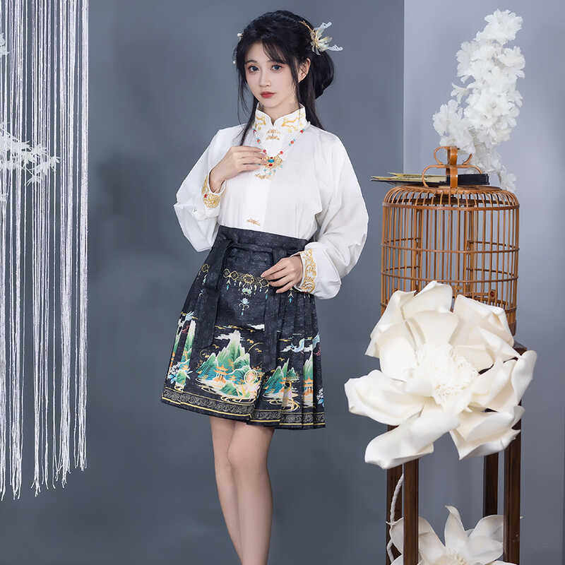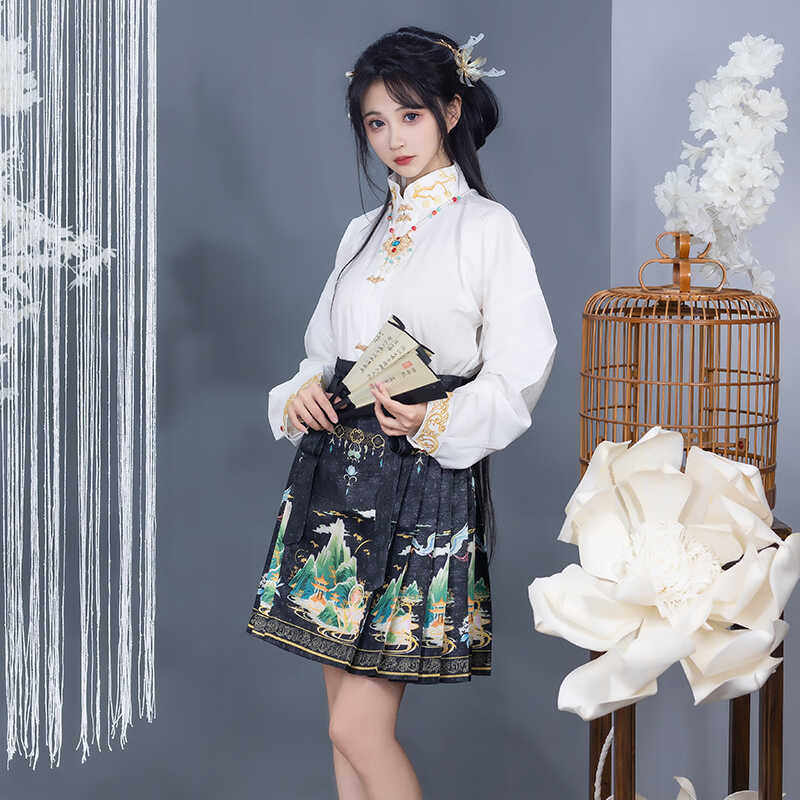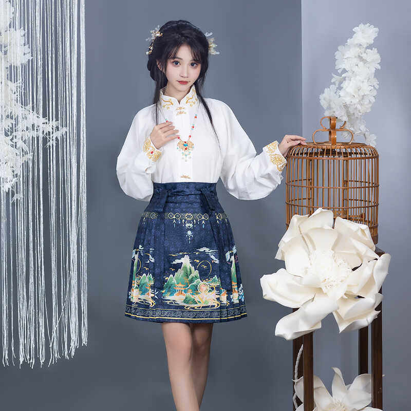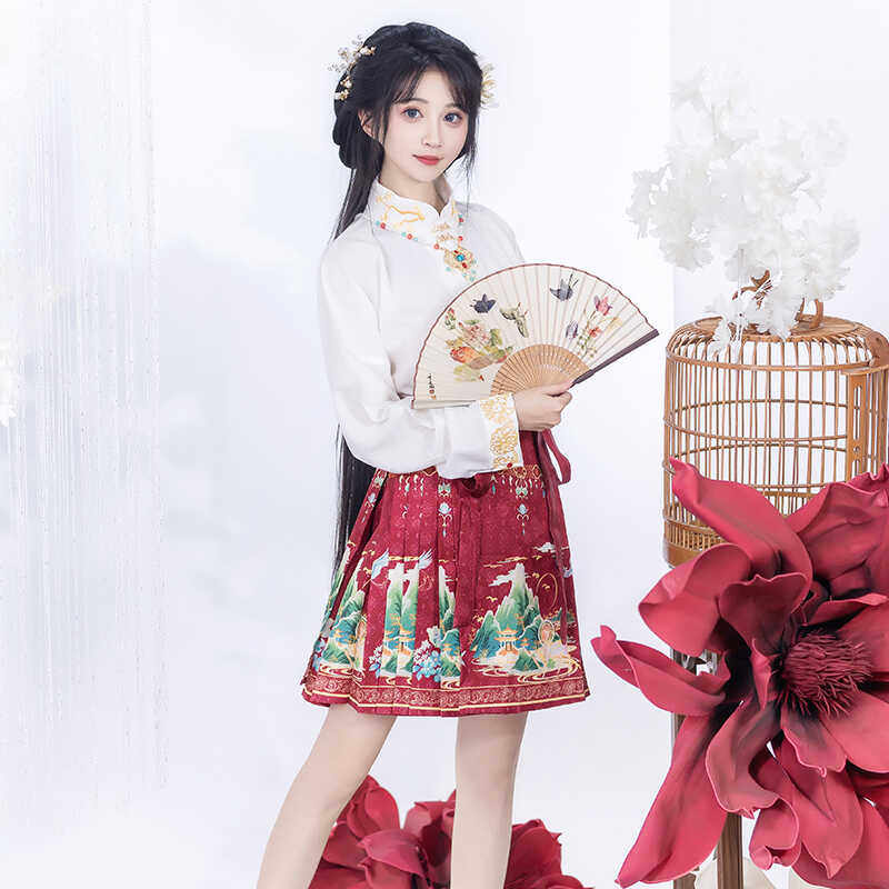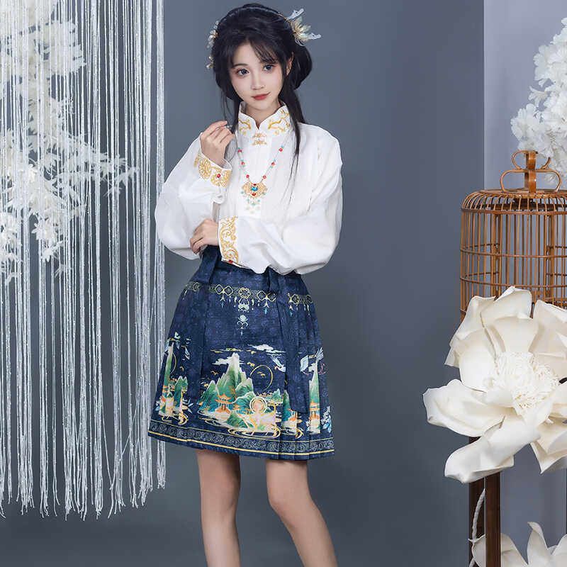 📚 王洪旗神鹿汉服女原创中式上衣短款马面裙印花改良套装汉元素国风