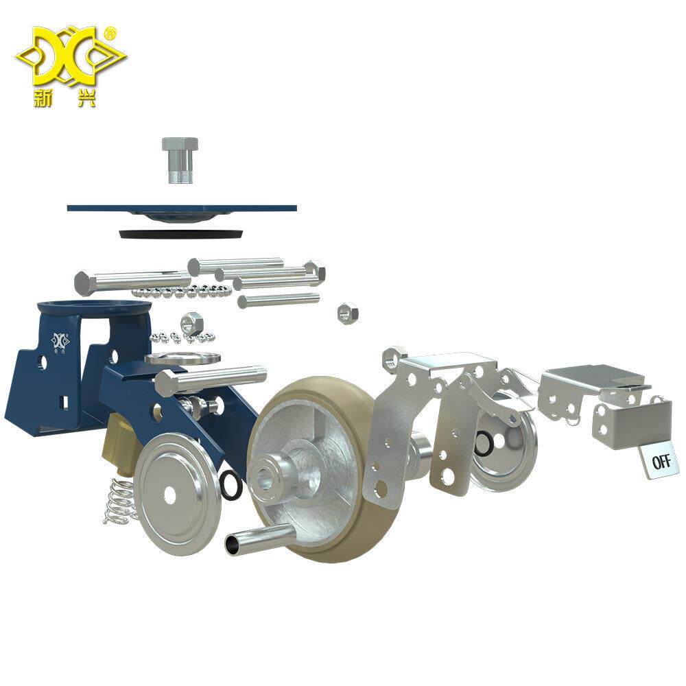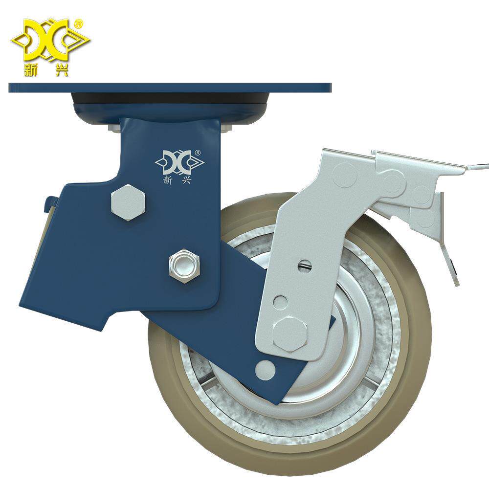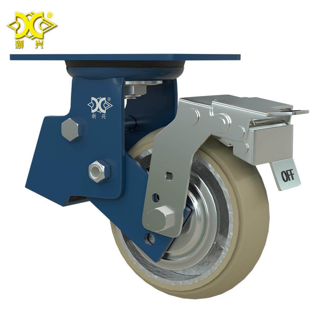 📚 重型脚6寸弹簧带减万622震轮刹轮聚氨酯PU定向轮台车防震弹簧向轮