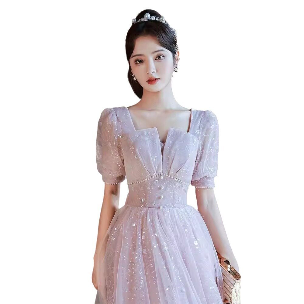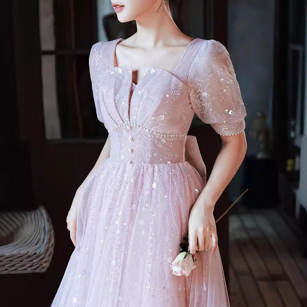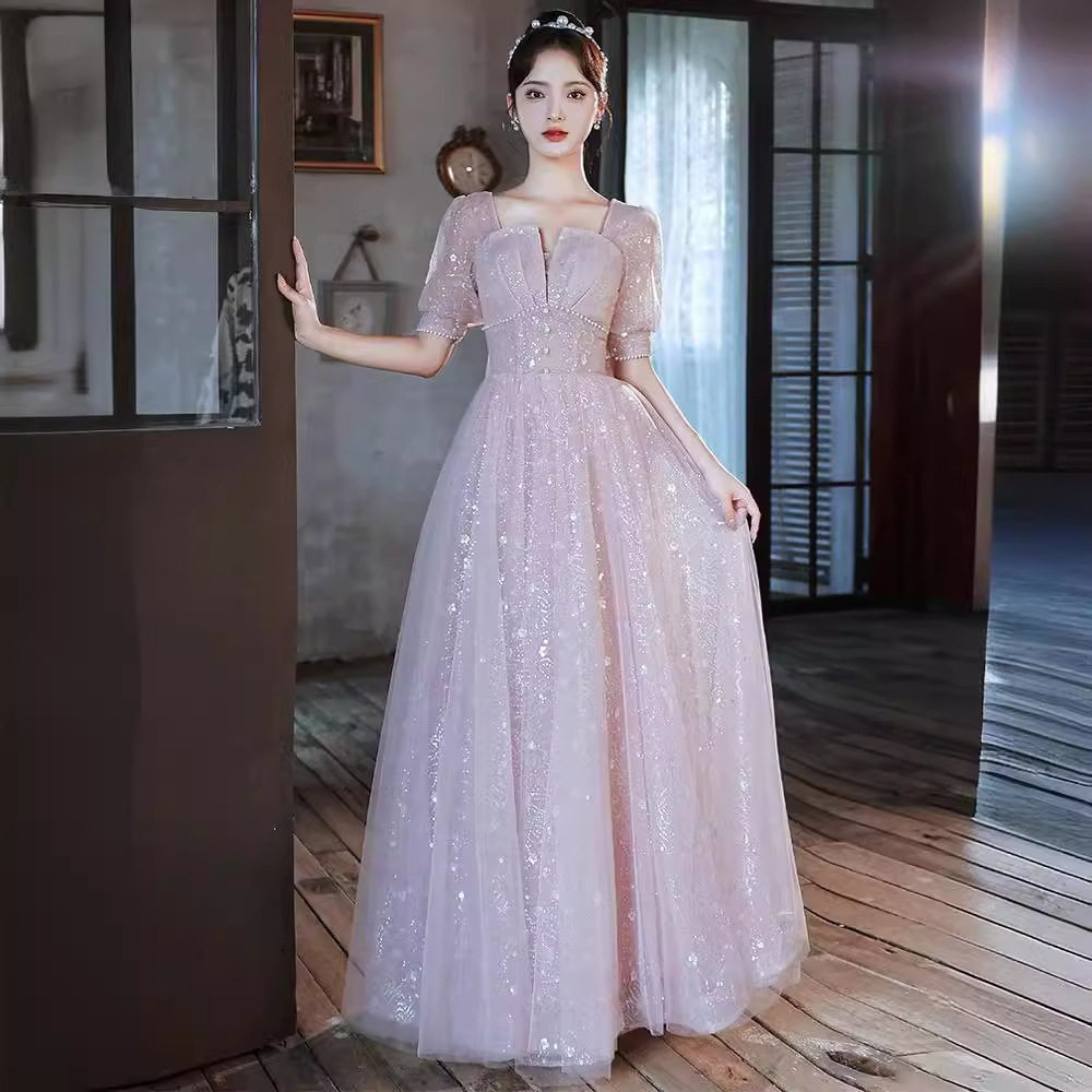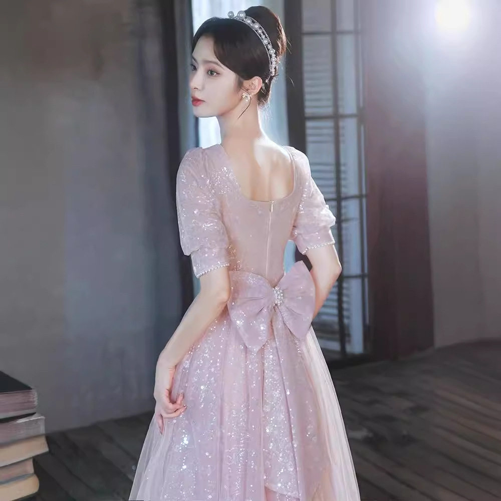 📚 粉色晚礼服轻奢小众端主持人成人礼敬酒服级感在逃公主订婚裙
