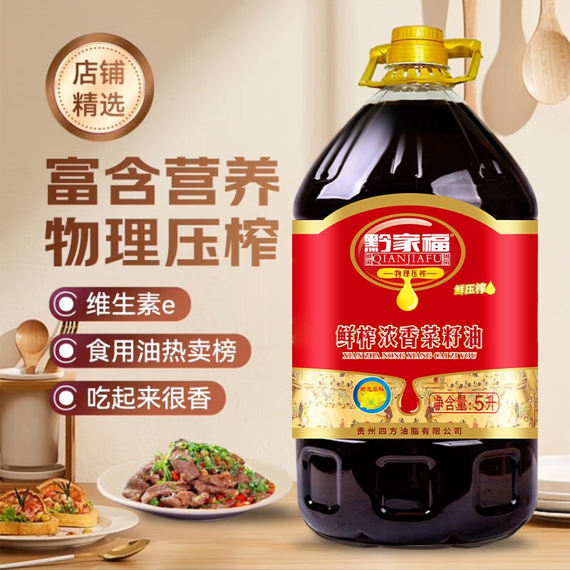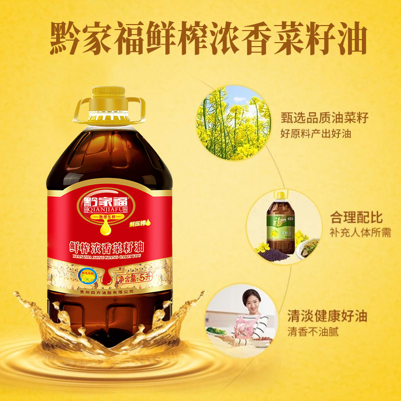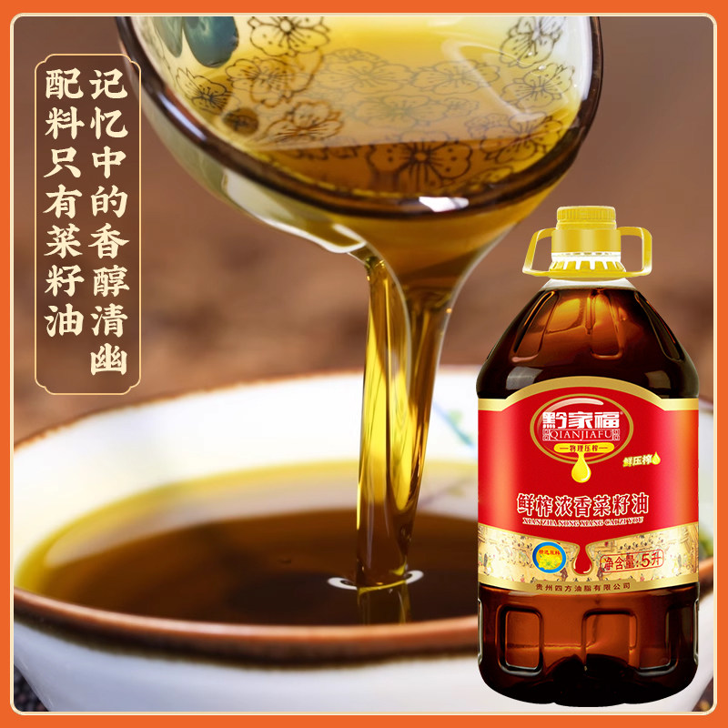 📚 贵州黔家福纯菜籽油浓香鲜榨5L/桶农家自榨菜子油食用油榨油9.2斤