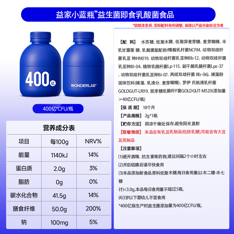 📚 万益蓝WonderLab小蓝瓶益生菌400亿肠胃肠道乳酸