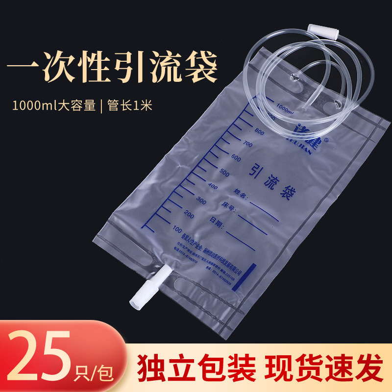 📚 25个诸健一次性引流袋导尿管集尿袋防逆流1000ml加厚长1.2米