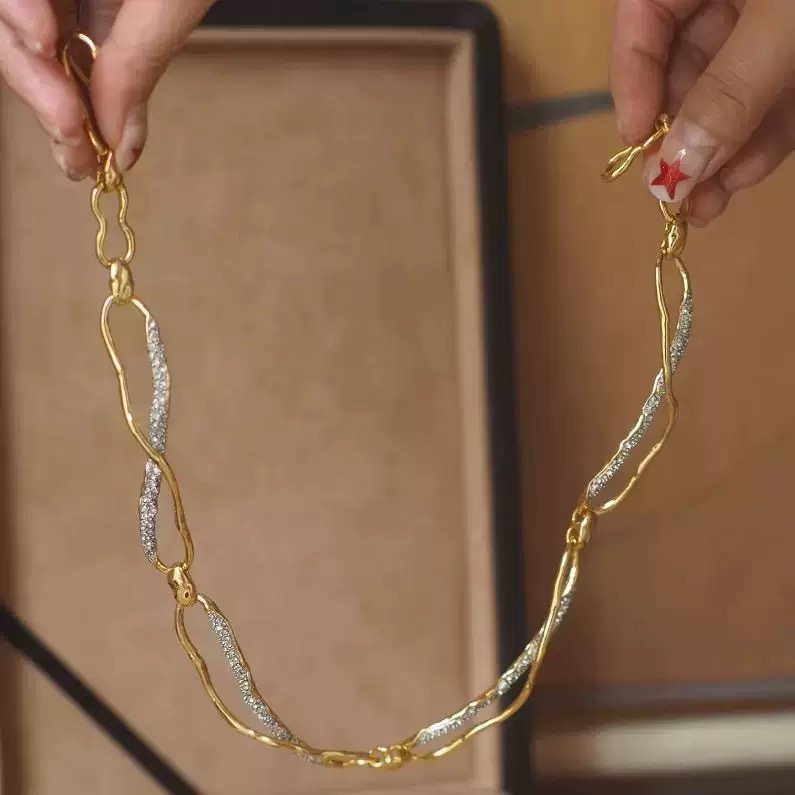 📚 鬼才设项链条重工项链女微镶欧美时尚设计感优雅气质轻奢锁骨链