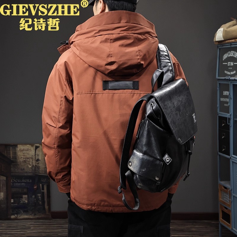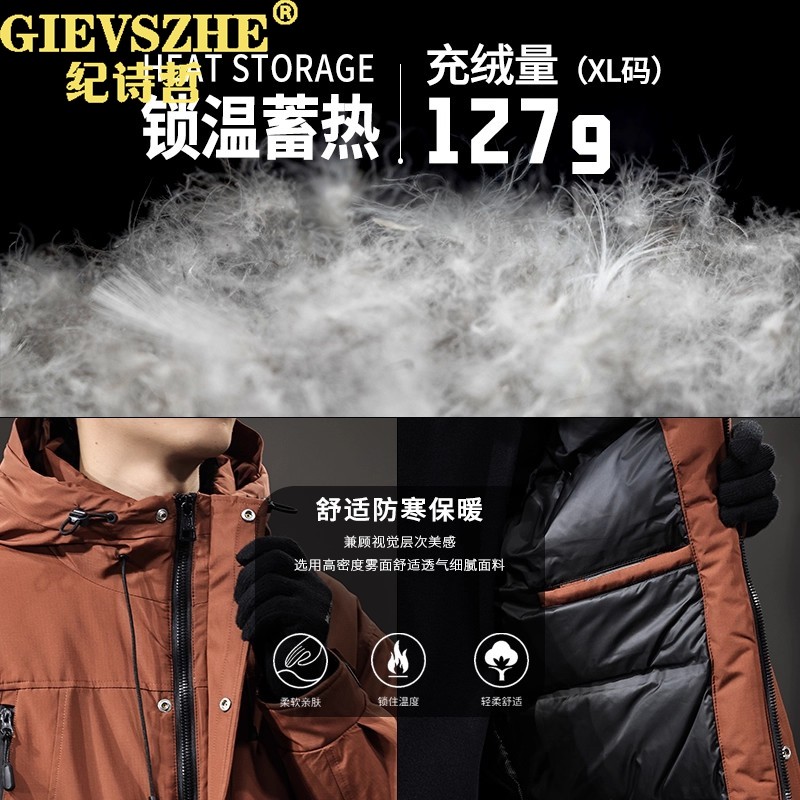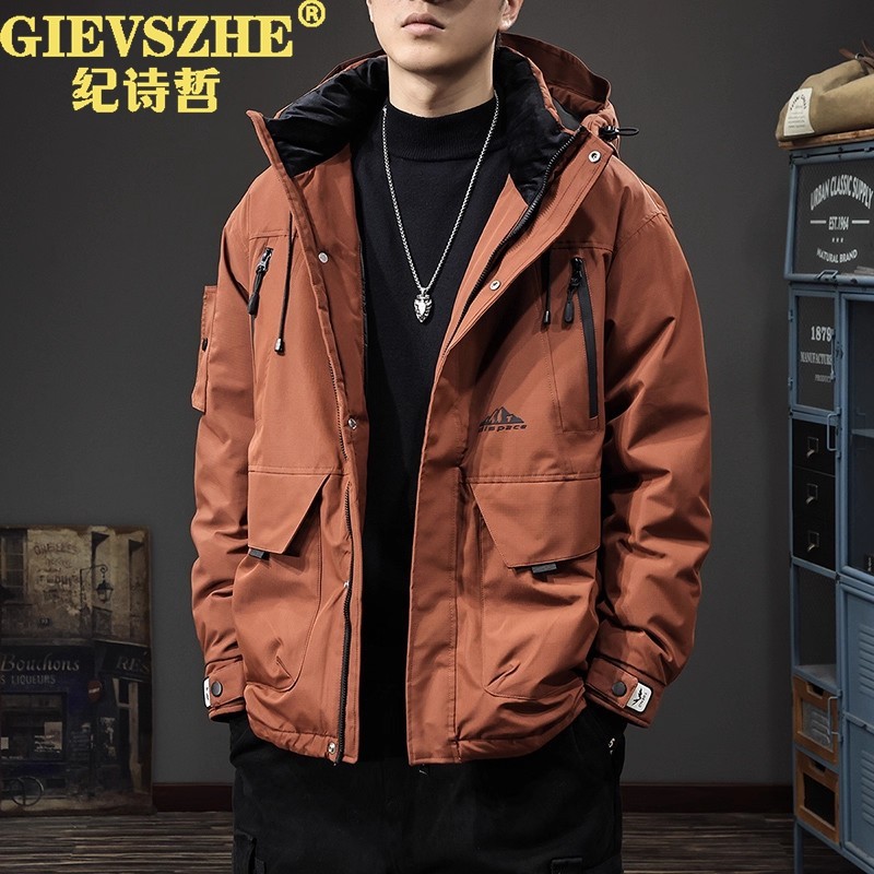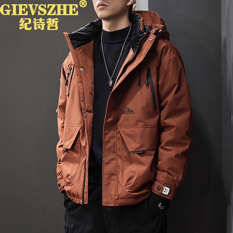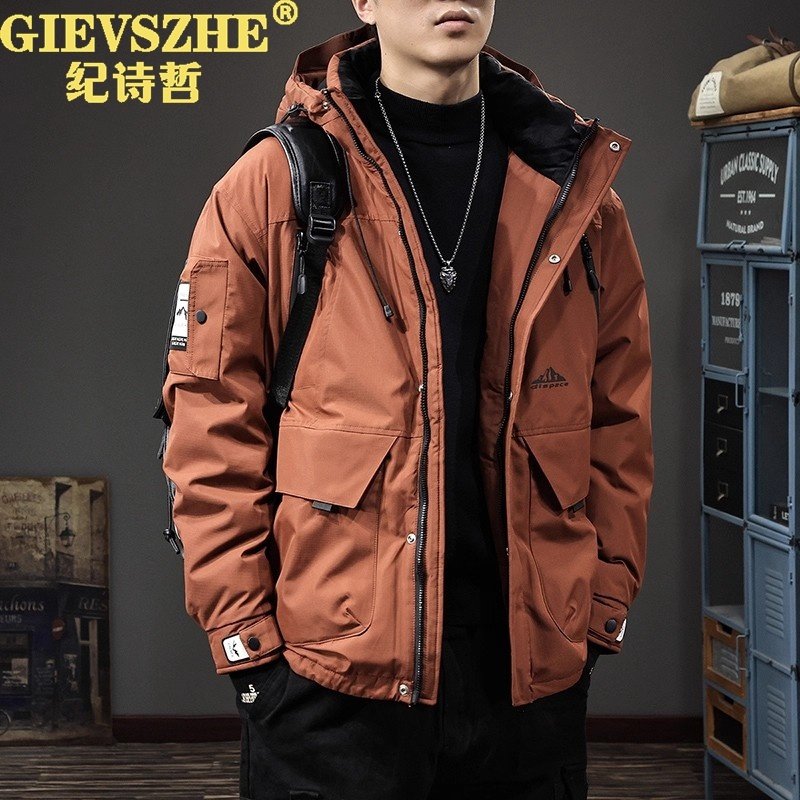📚 纪诗哲冬季新款工装冲锋男90鸭绒宽松加厚羽绒服户外休闲连帽外套