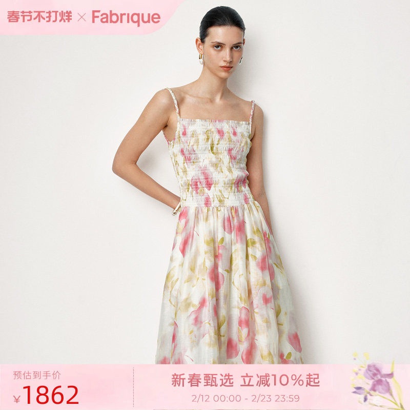 📚 Fabrique梦境花园桑蚕丝亚麻弹力抹胸印花无袖吊带连衣裙25夏新品