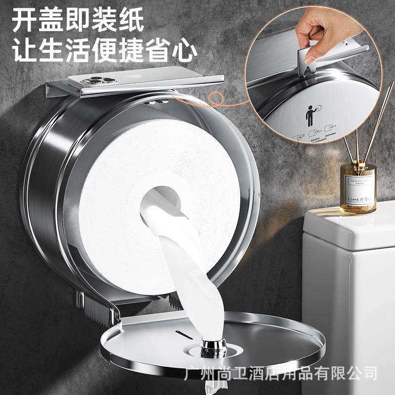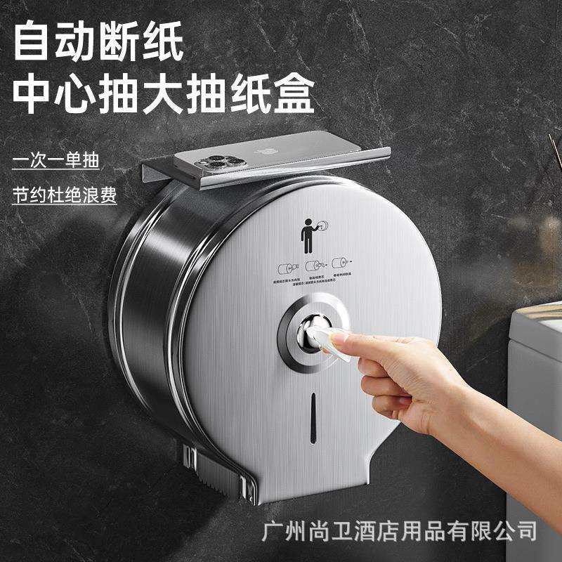 📚 不锈钢中心抽卷纸盒卫生间纸巾盒大盘纸盒免打孔自动断纸省纸神器