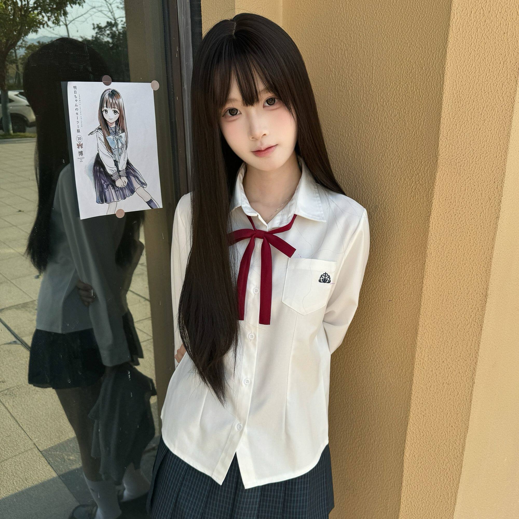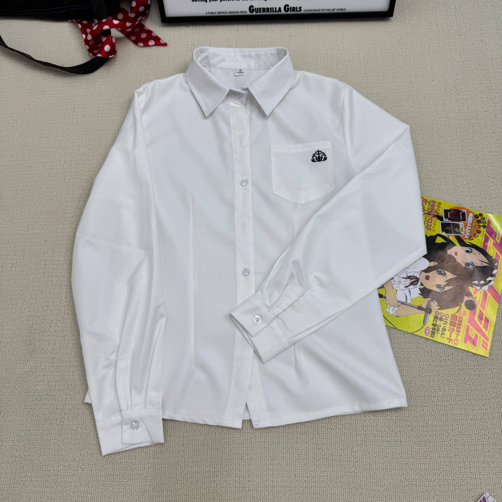 📚 长袖jk衬衫基础款学生制服刺绣上衣学院风抗皱内搭白色衬衣女