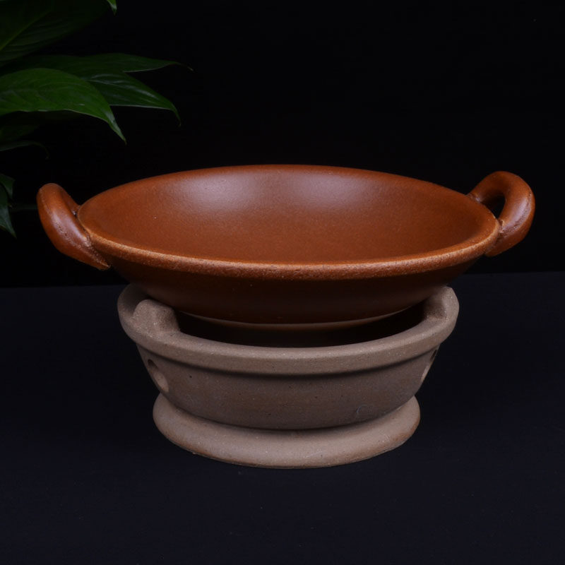 📚 湘菜馆土钵子土陶双耳锅酒精炉热菜保温炉带耳砂锅饭店粗陶小干锅