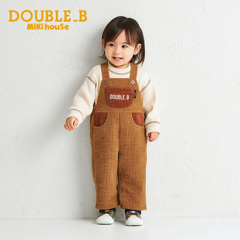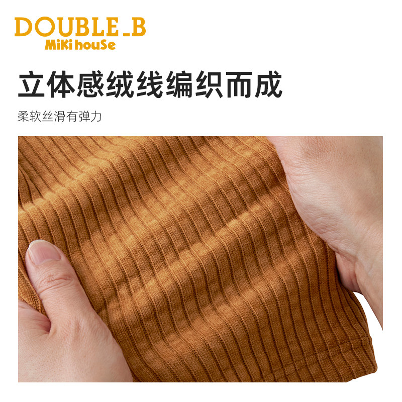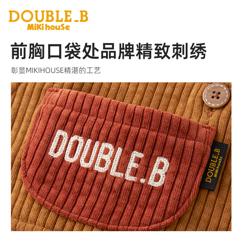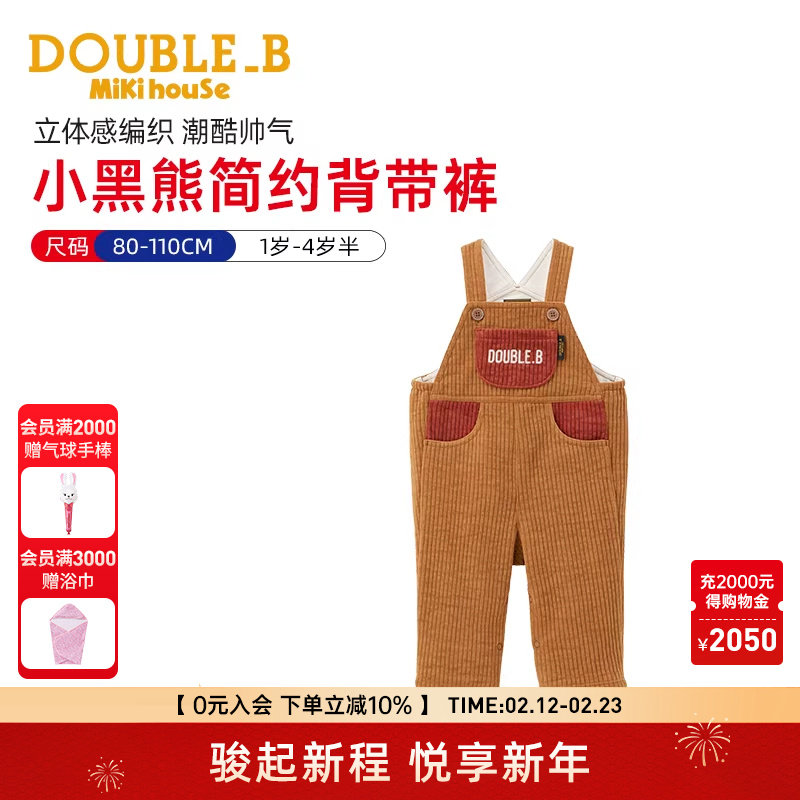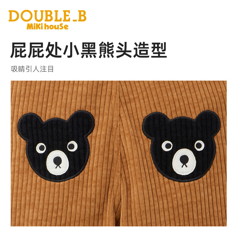 📚 MIKIHOUSE儿童裤子背带裤春秋小黑熊刺绣徽章弹力长裤DOUBLE_B
