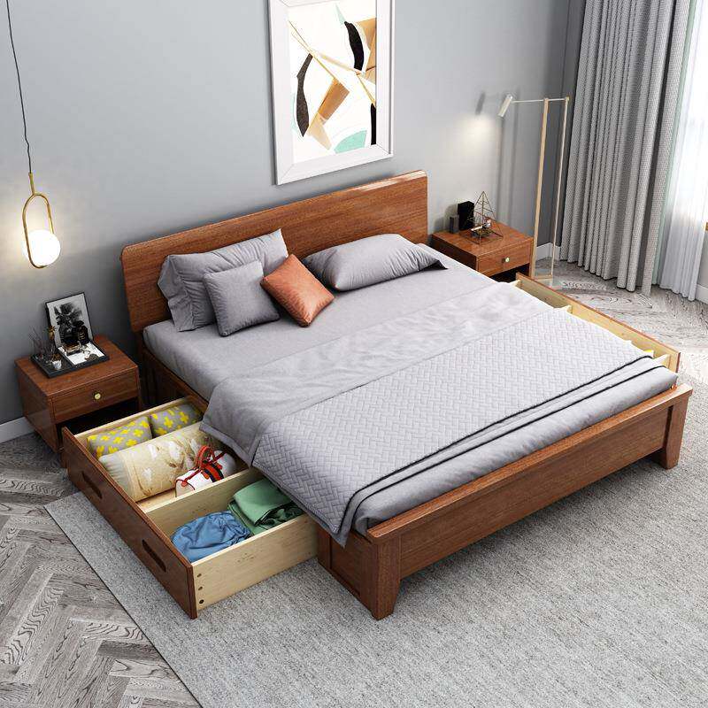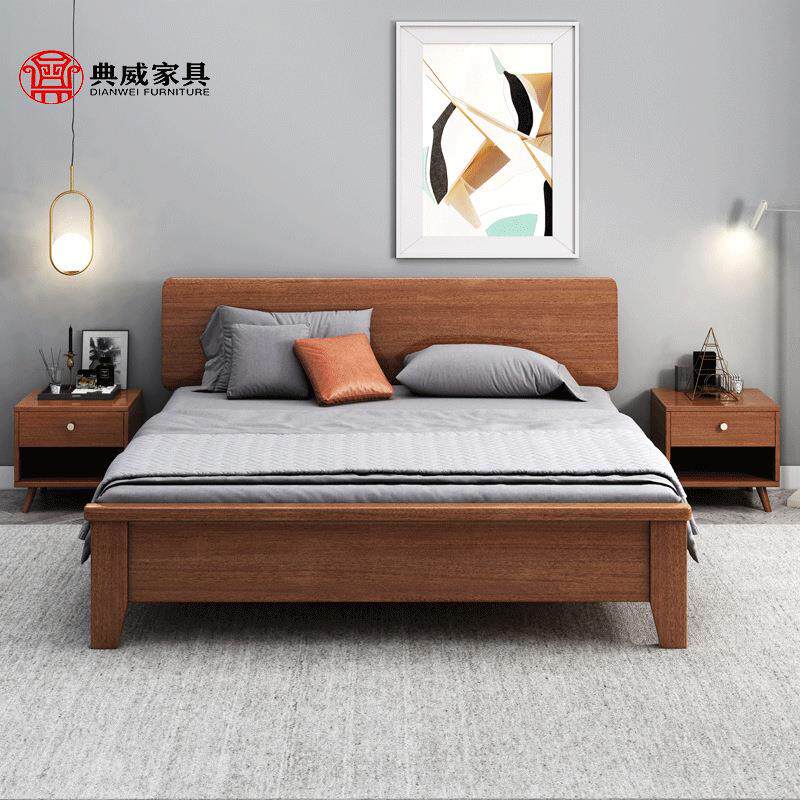 📚 胡桃木实木床主卧双人床1.8米1.5米原木北欧小户型经济型全实木床