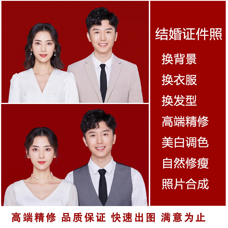 📚 ps合成结婚照登记照P图片精修换底色换衣服背景专业修图人像精修