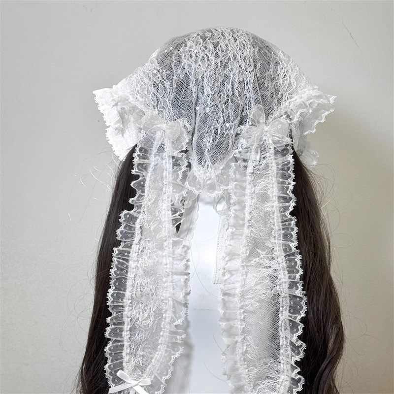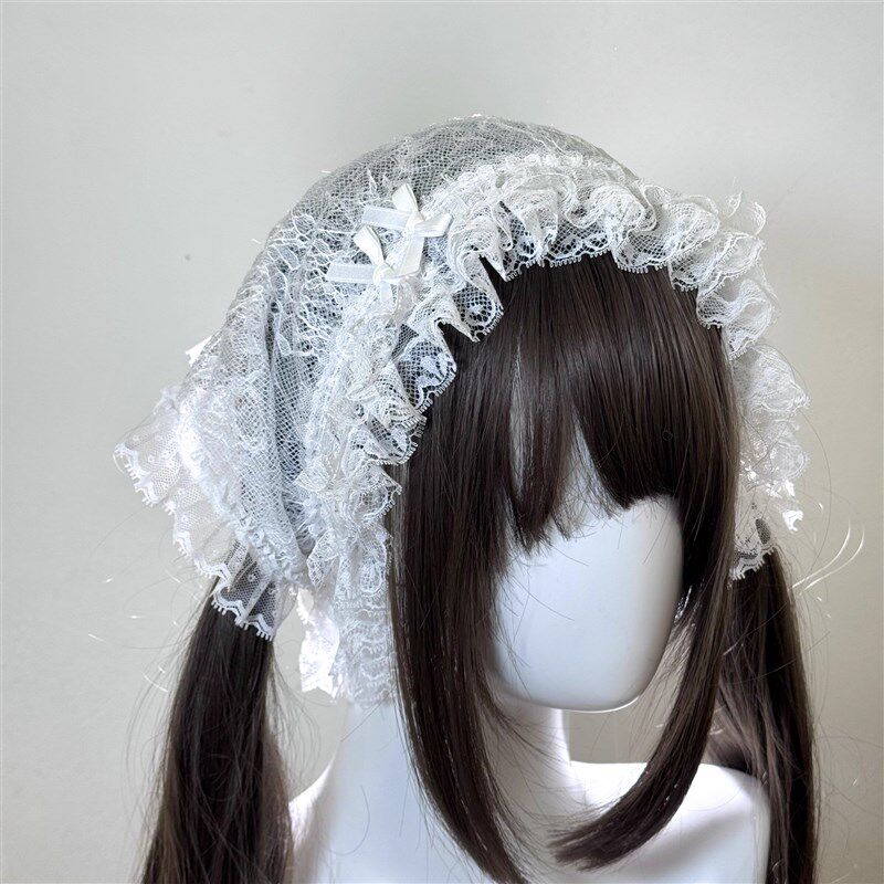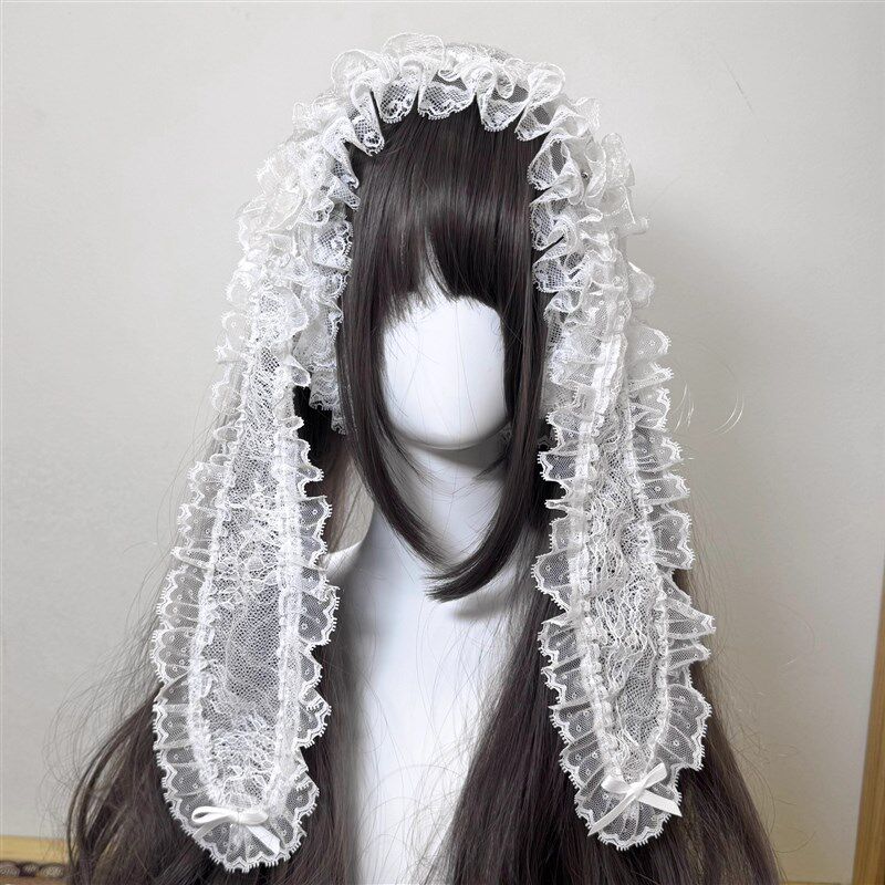 📚 三尾树 纯白蕾丝兔耳三角巾配饰Lolita发饰