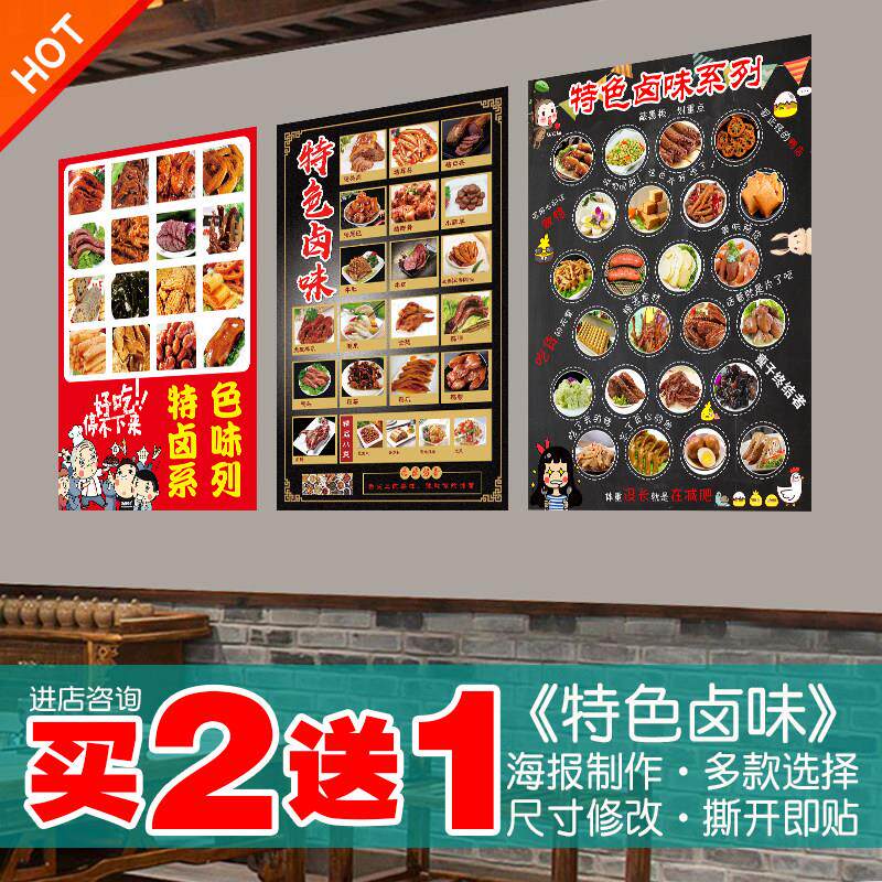 📚 卤味海报写真喷绘定制作贴纸墙画鸡爪特色背胶灯片防水晒图片自粘