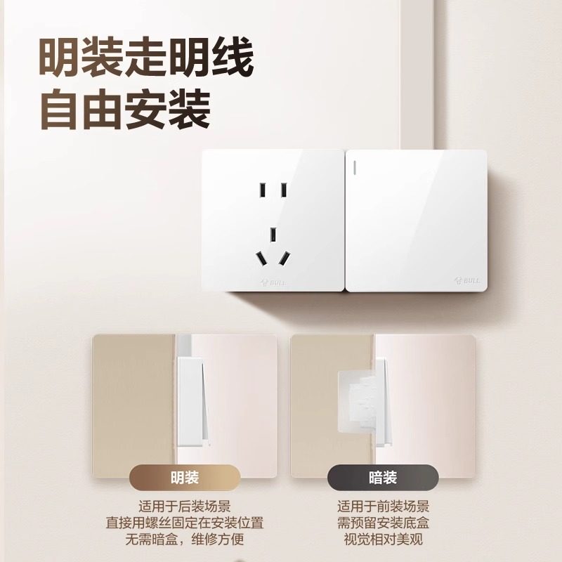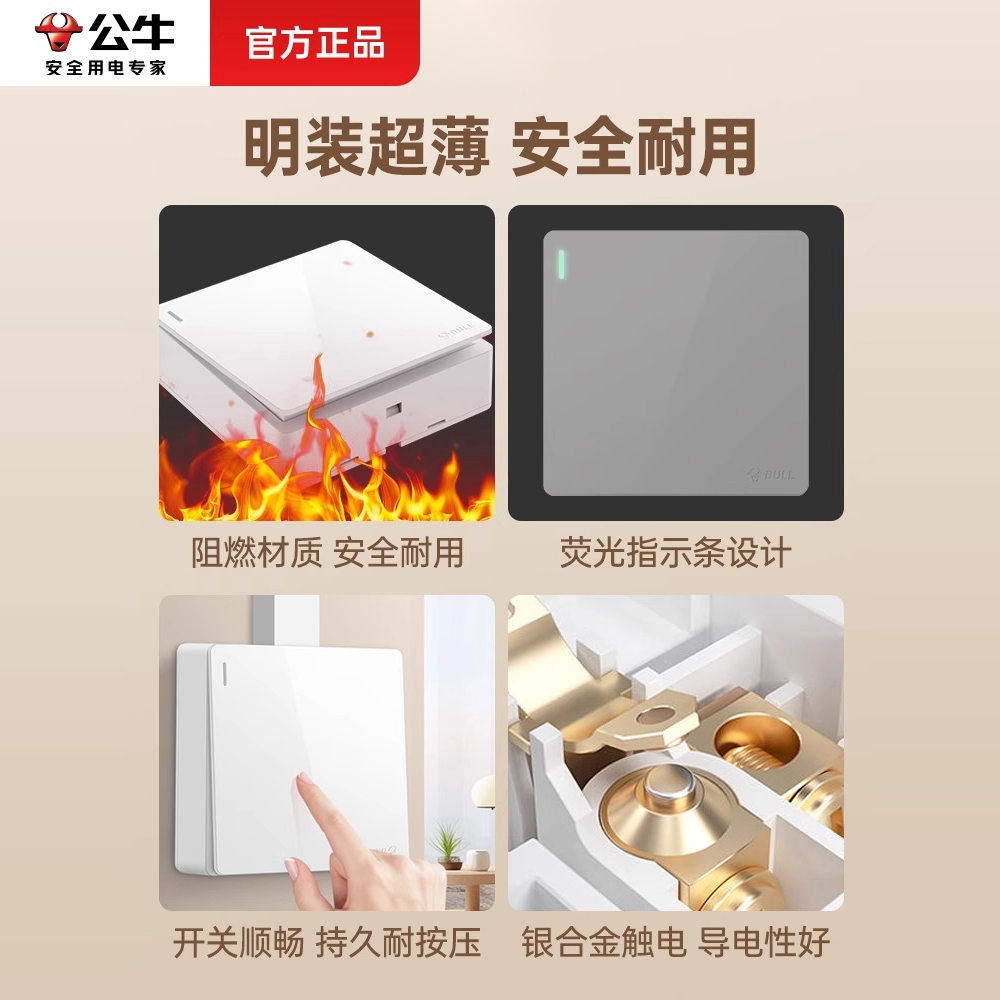 📚 公牛明装一灯三控中途开关插座一开单开多控单联中间中继中转开关