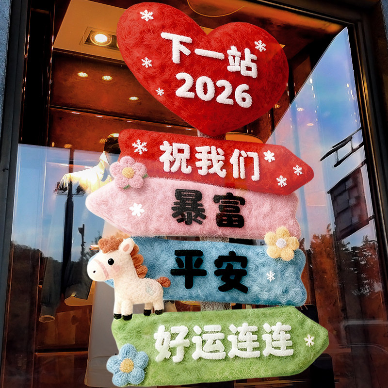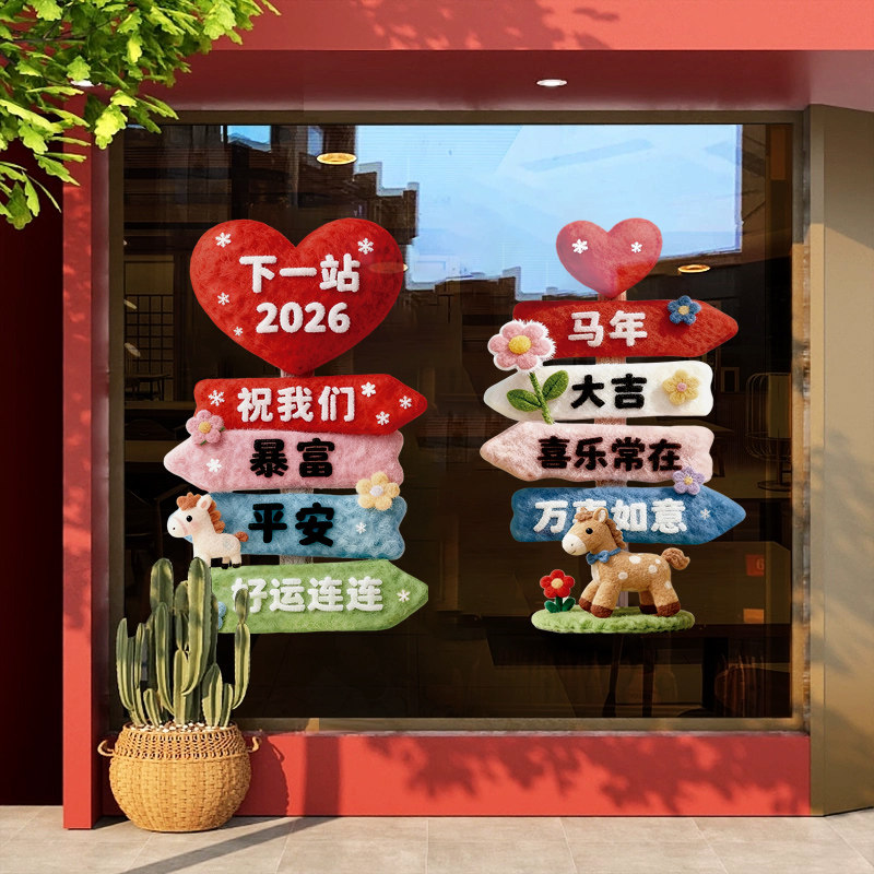 📚 新年装饰窗花马年春节创意路牌窗贴2026过年店铺静电玻璃贴门贴纸
