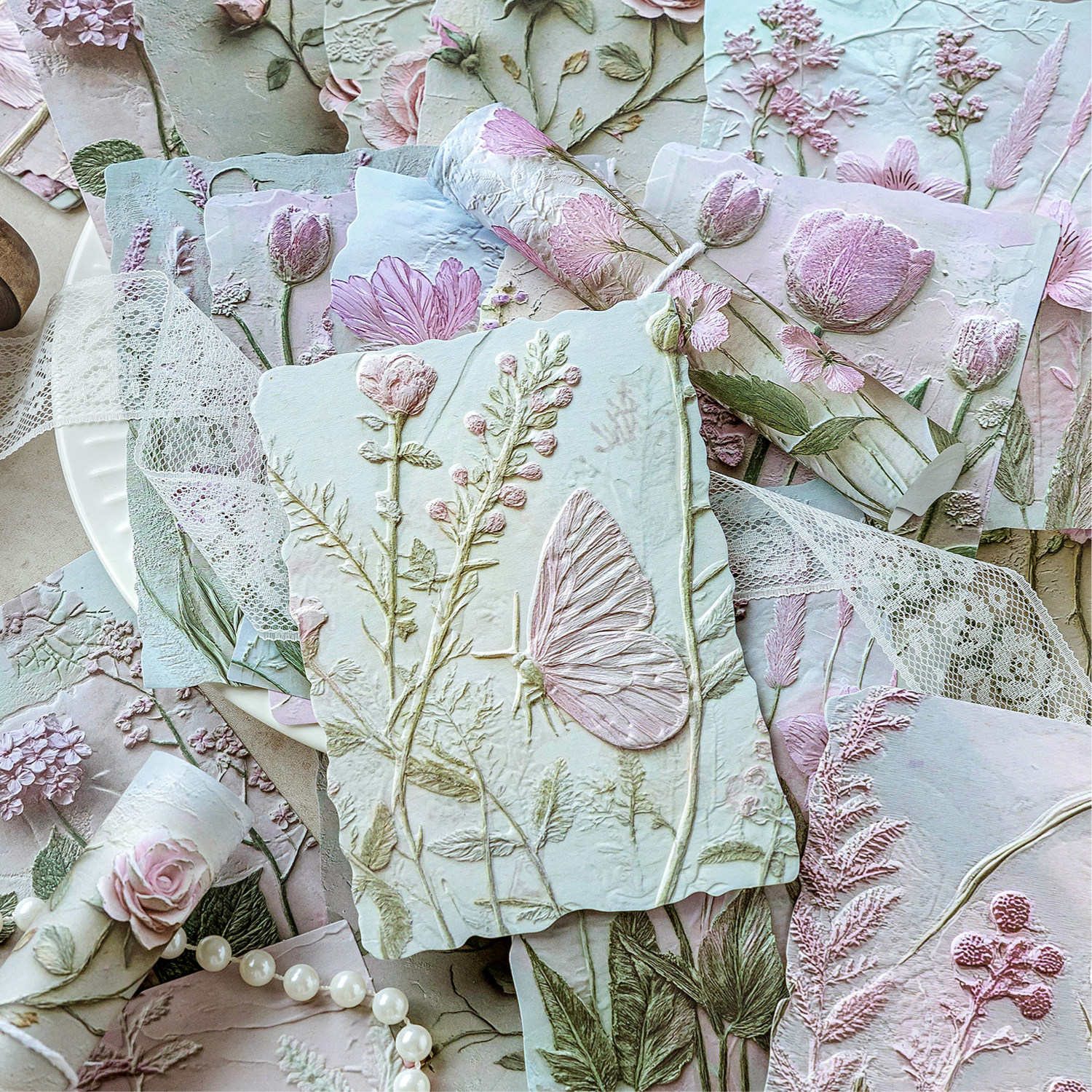 📚 双享装凸版浮雕手帐素材纸包 ins风高颜值花草情书轻复古手账装饰