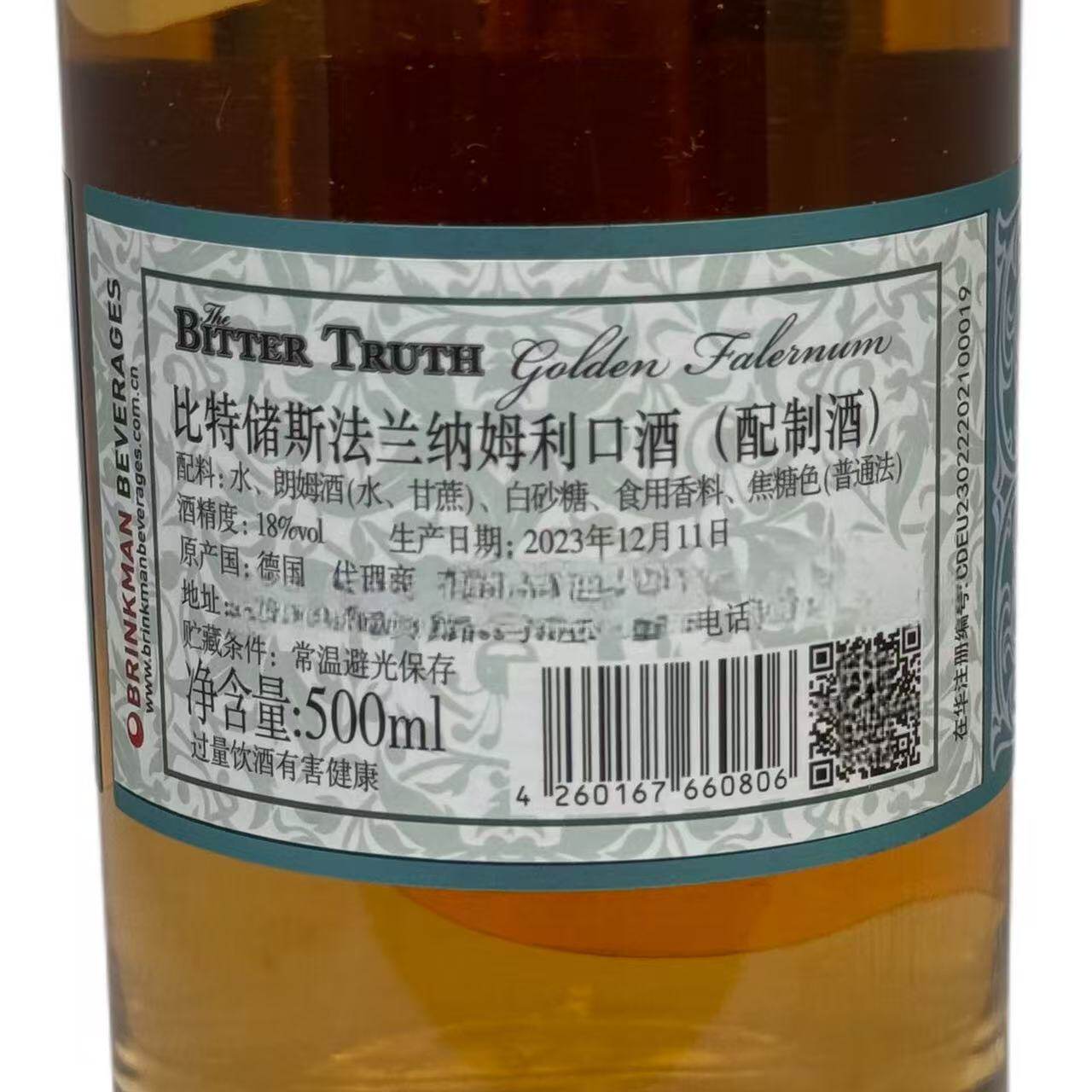 📚 比特储斯法兰纳姆利口酒BitterTruthGoldenFalernumLiqueur 500ml