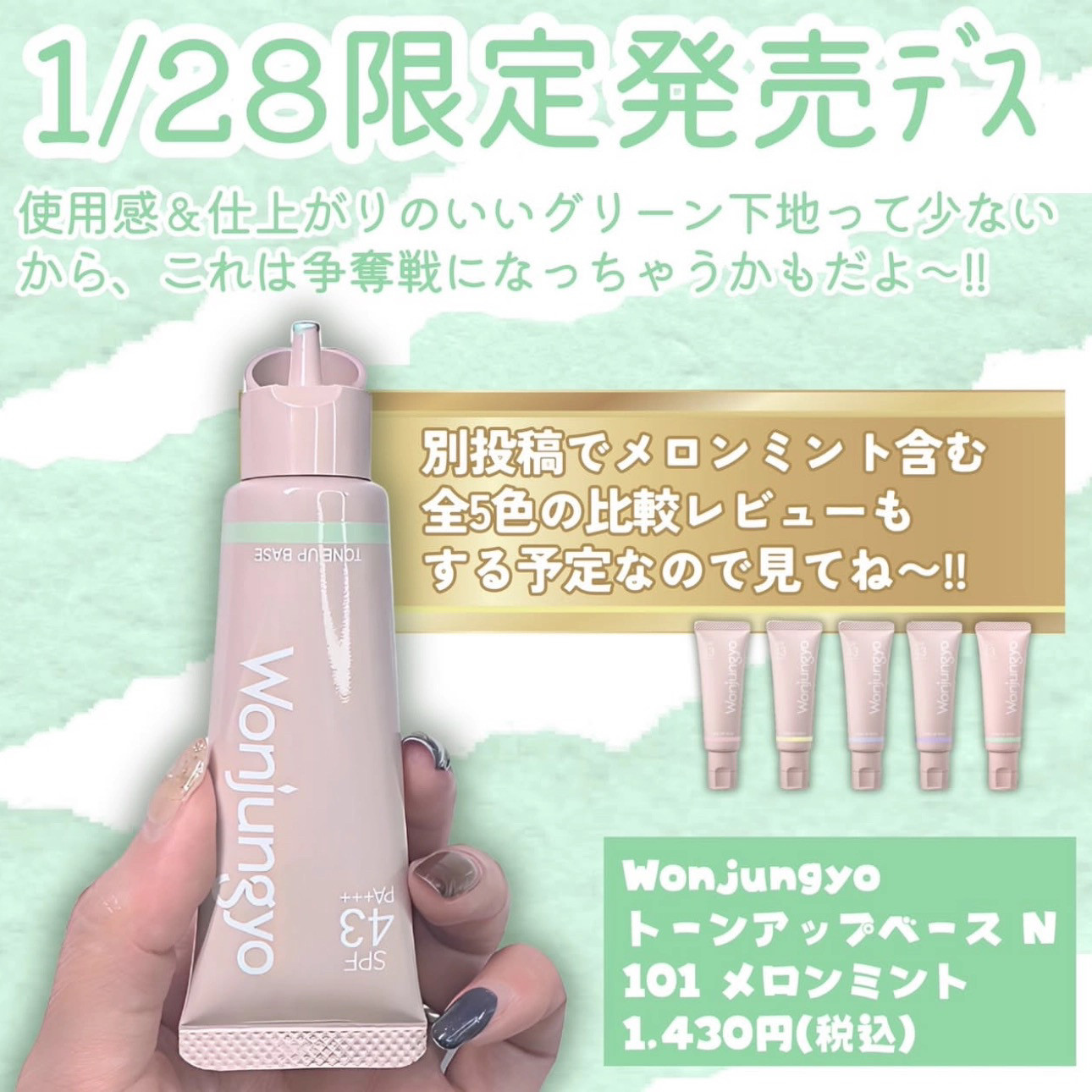 📚 1.28发售!日本wonjungyo平井桃2026新品隔离妆前乳 限定色绿色