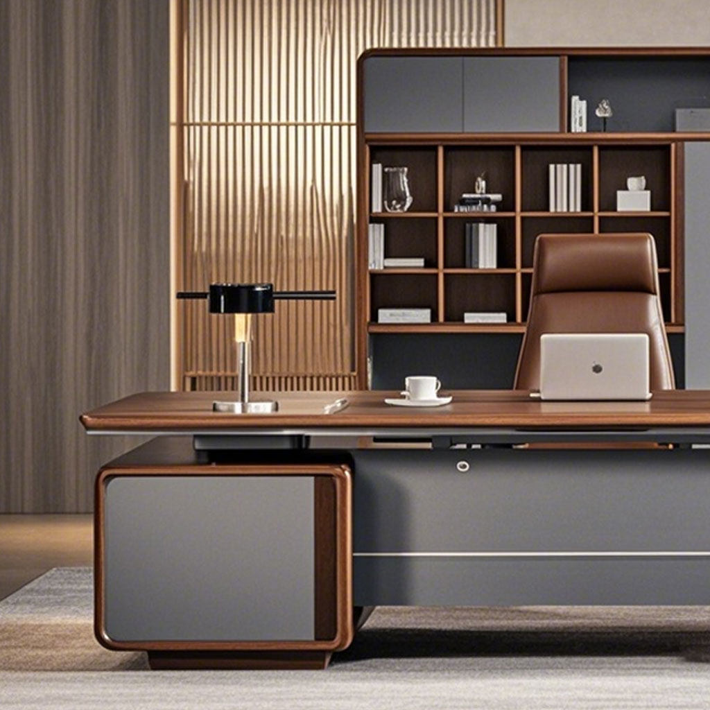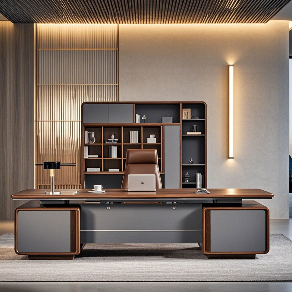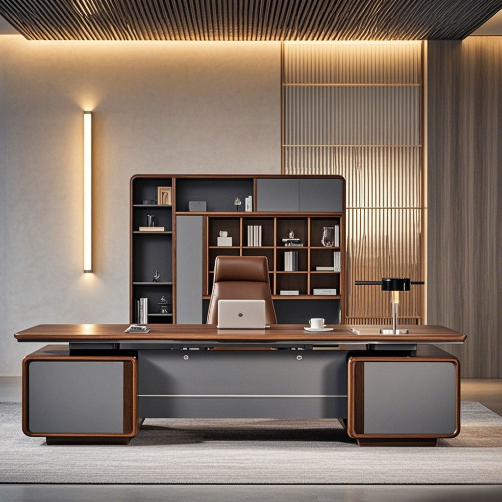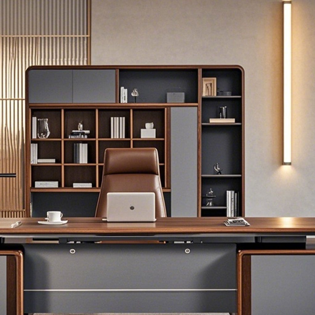 📚 新中式办公桌老板桌书柜桌椅组合实木办公室高端办公台总裁大班台