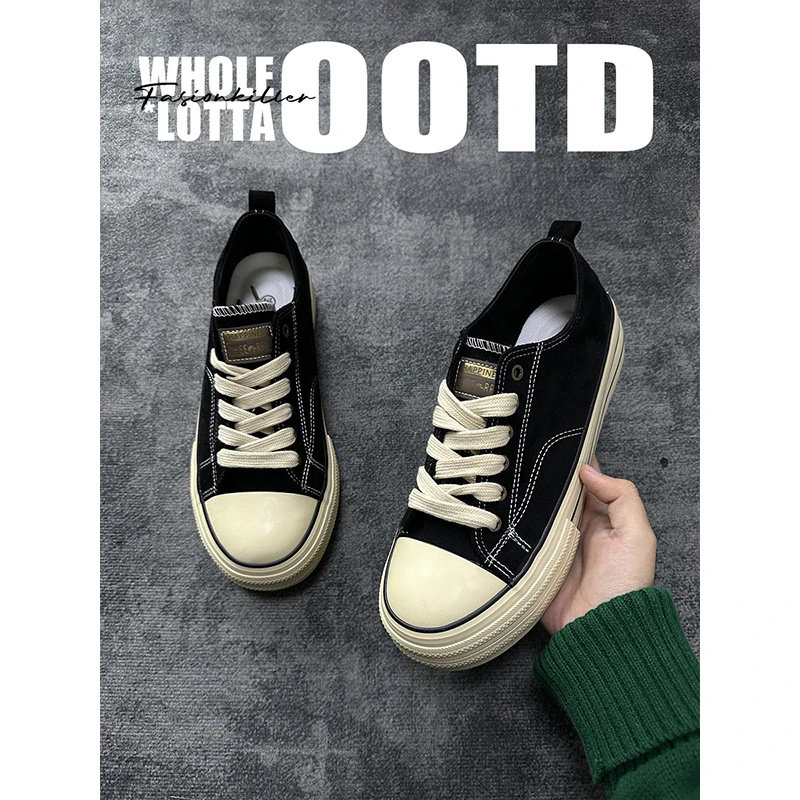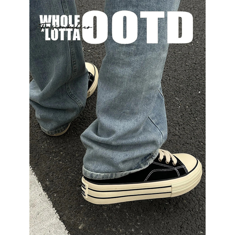 📚 NewRockstarchoppa春夏小众日系简约帆布鞋男 厚底黑色仿牛绒板鞋