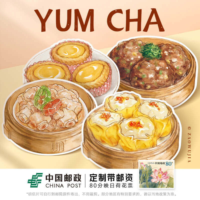 📚 【早茶大全套共13张】 原创水彩手绘风点心异型带邮资明信片新中式广州邮政定制可邮寄 文创节日祝福收藏文化礼品【中商文创】