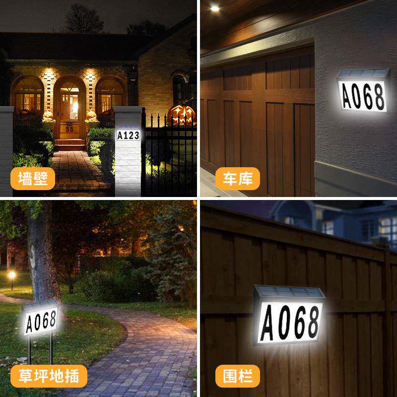 📚 太阳能门牌灯数字地址指示号码牌灯光控门牌号别墅室外庭院门牌灯