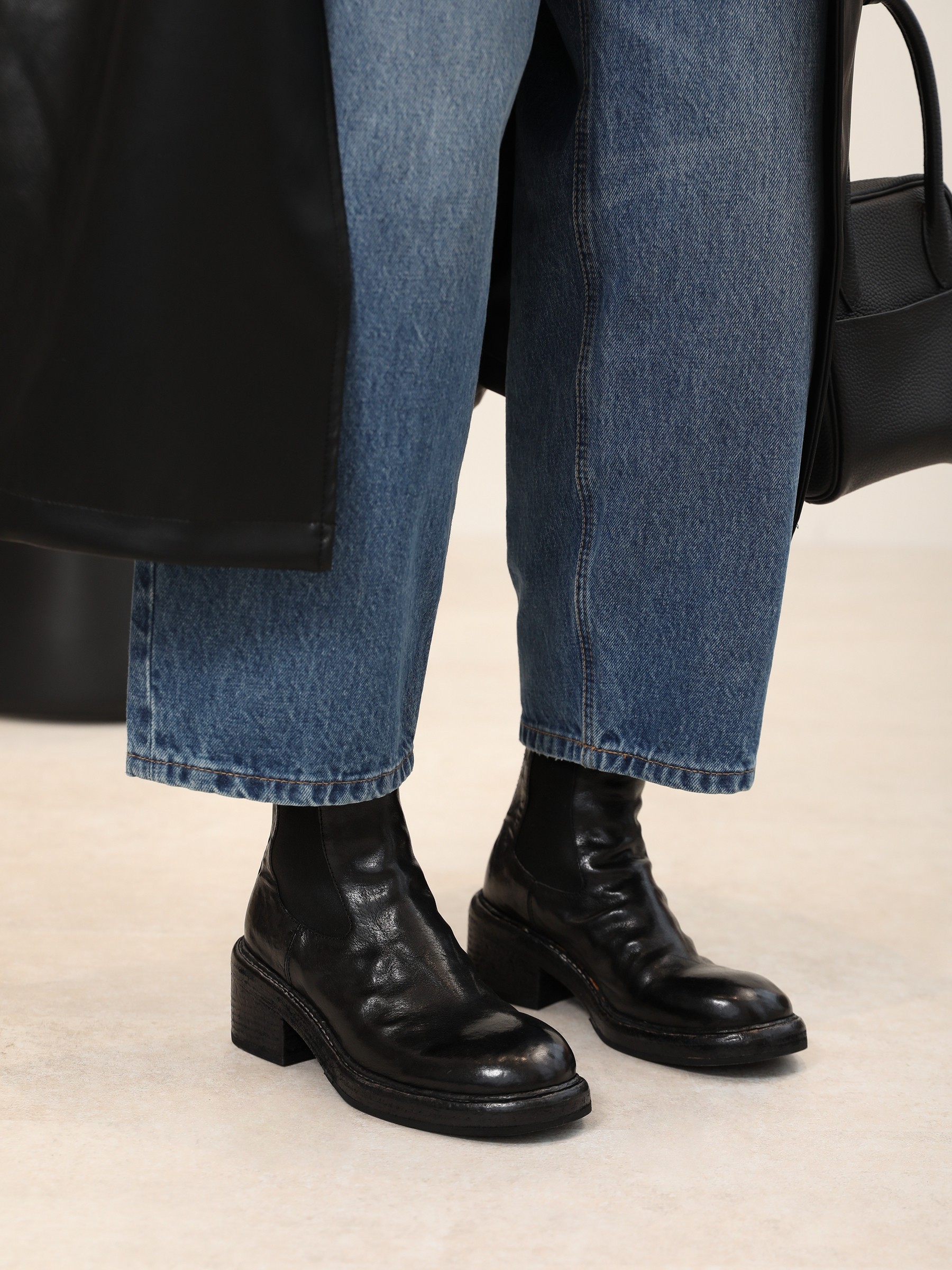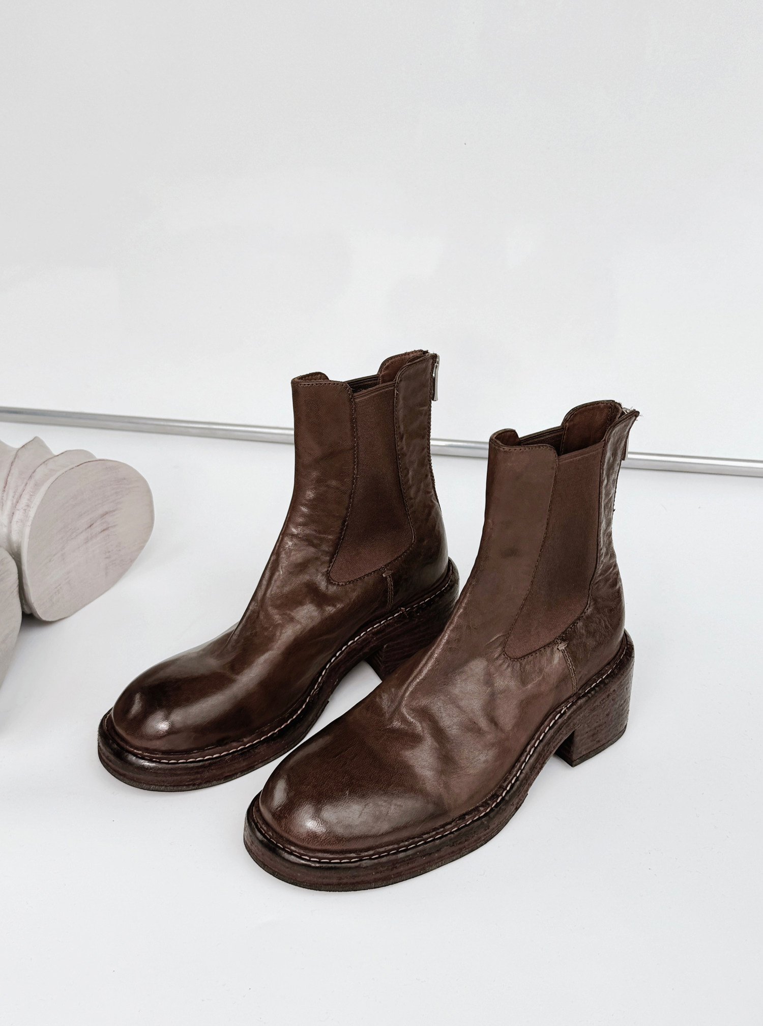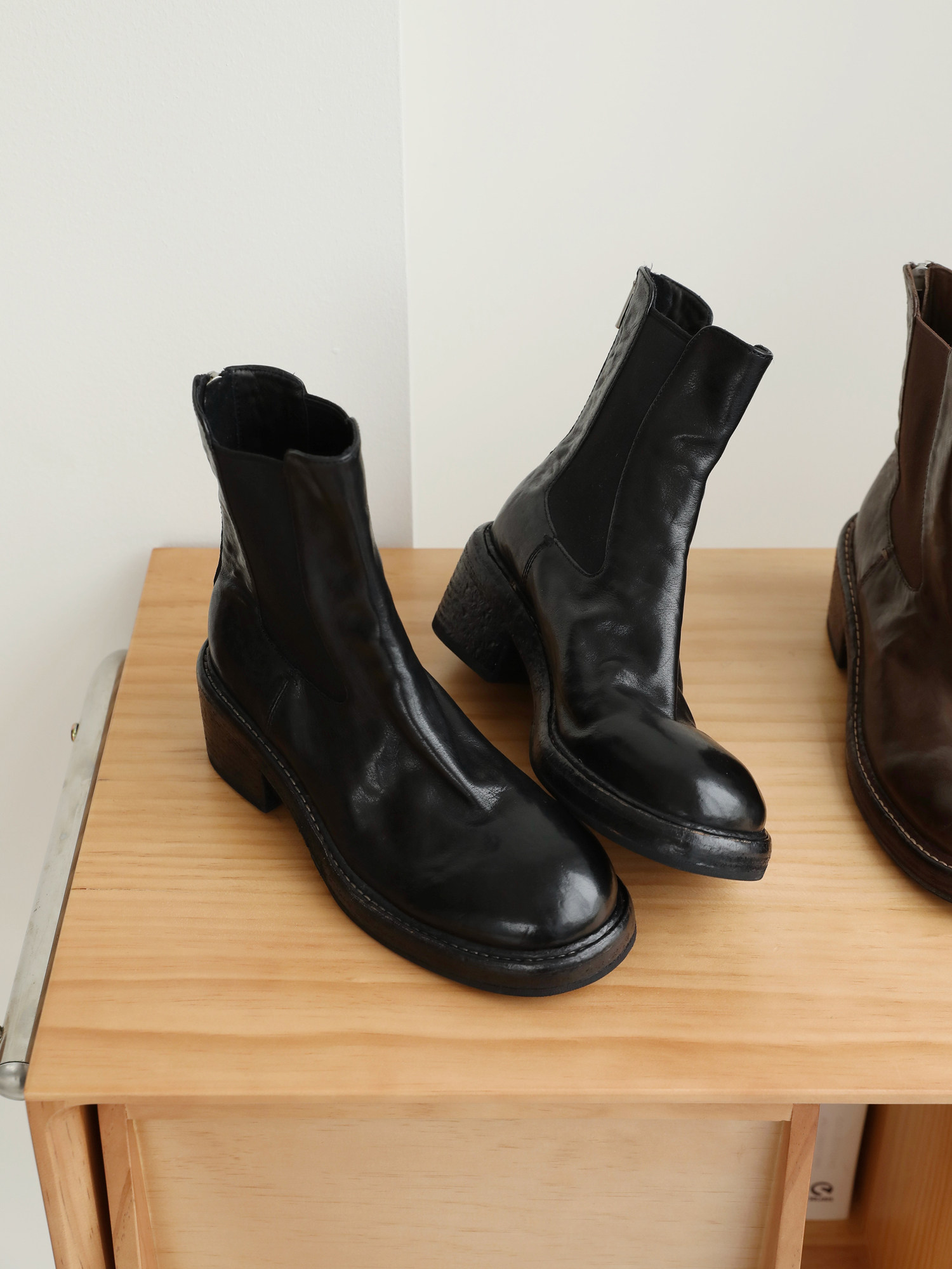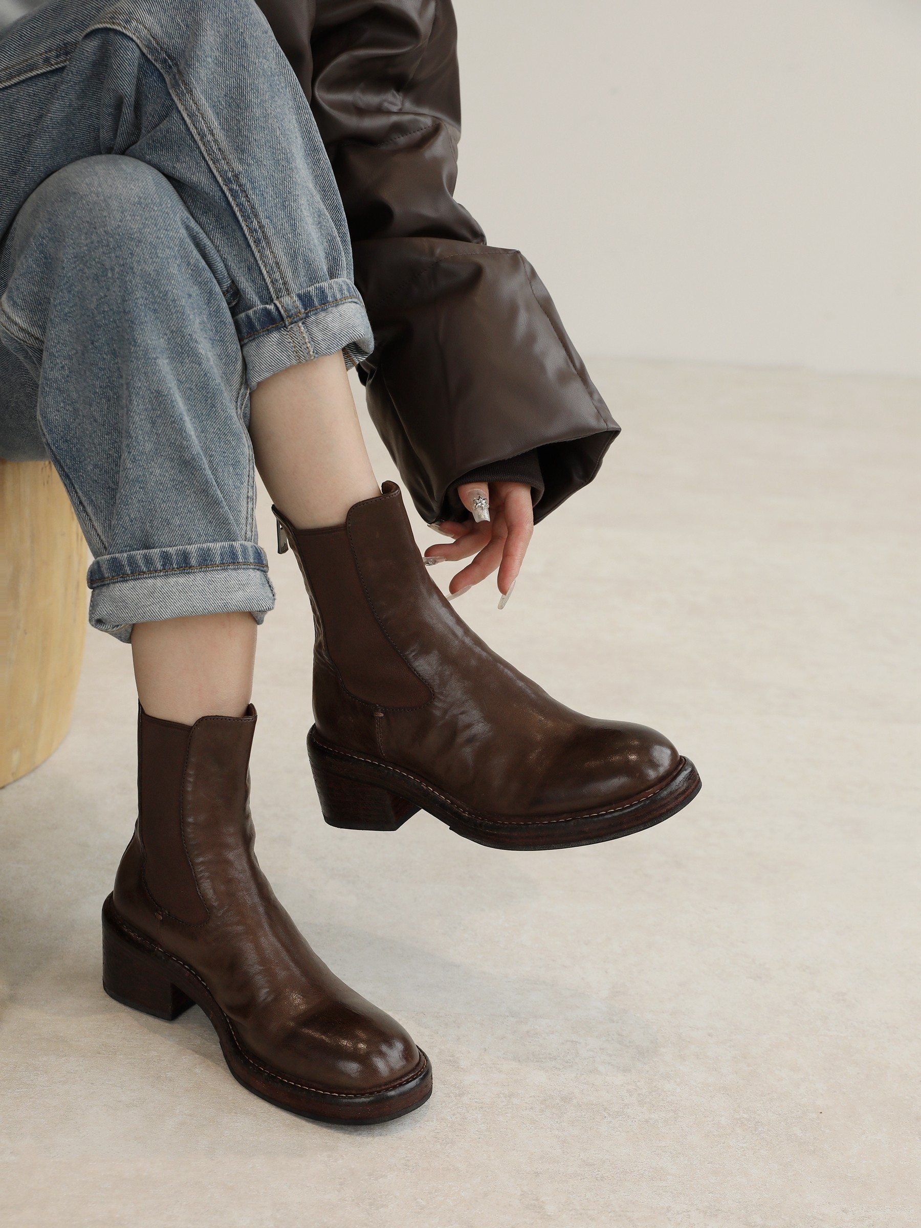 📚 InkingPot彭姐 水洗马皮圆头后拉链瘦瘦靴粗跟切尔西固特异短靴