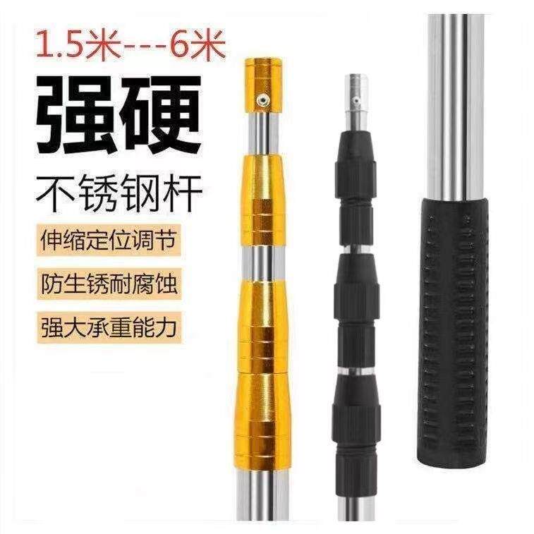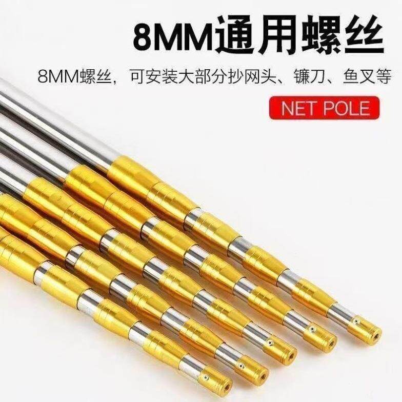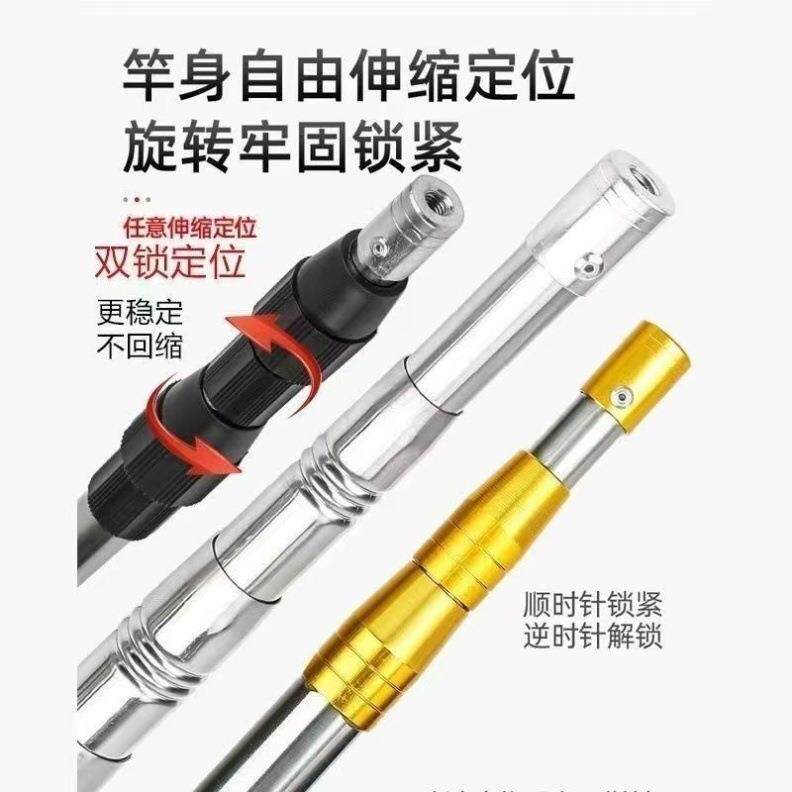 📚 棍子可伸缩不锈钢3米5米米抄网杆铆钉加固定位鱼叉竿子搭钩耙通用