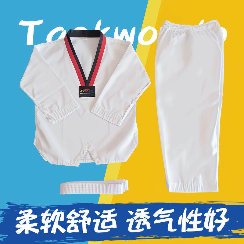📚 跆拳道服装儿童道服白色学员武术训练比赛春秋季长袖套装热卖舒适